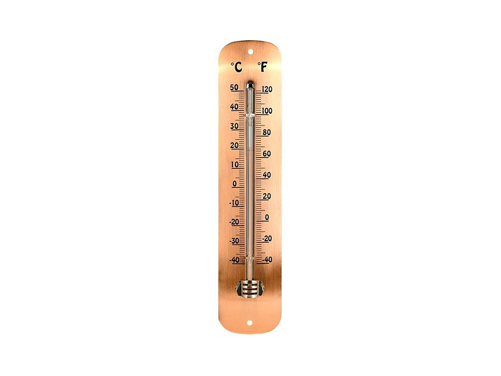 Deze stijlvolle thermometer van Esschert Design met een trendy koperkleurige afwerking geeft de temperatuur aan in zowel graden Celsius (-40°C tot +50°C) als Fahrenheit. Hij kan zowel binnen als buiten gebruikt worden.
