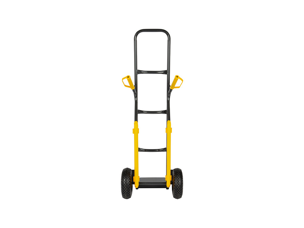 Deze steekwagen kan lasten dragen tot wel 200 kg. Hij is uitgerust met 2 luchtbanden en 2 gele handgrepen in kunststof.