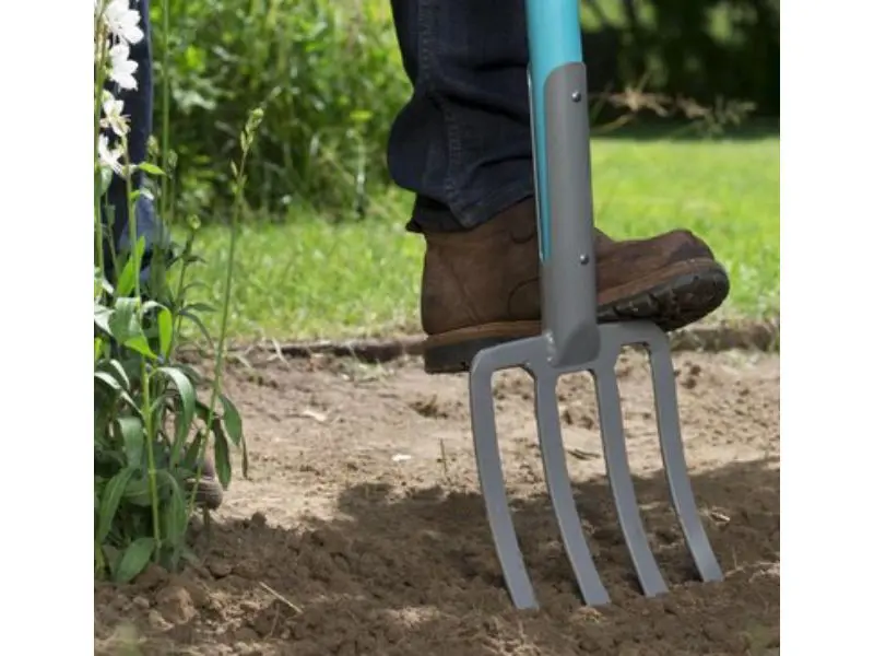 De Gardena NatureLine spitvork is een robuust hulpmiddel om te graven zonder de wortels te beschadigen en om aarde op te tillen en los te maken, met name in beplante gebieden. De gevormde schacht van hoogwaardig essenhout (FSC®-gecertificeerd) met D-greep ligt goed in de hand en garandeert een ergonomische werkhouding. De stevige lange tanden zijn gemaakt van gehard kwaliteitstaal.