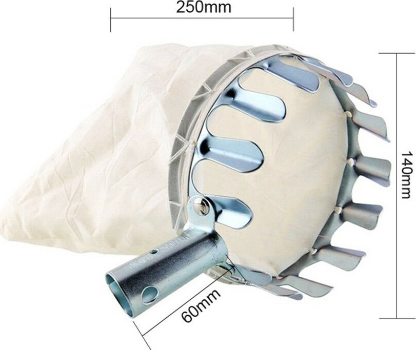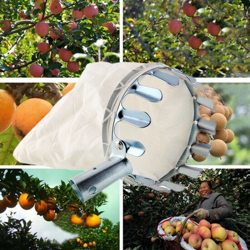 De fruitplukker is onder andere geschikt voor het oogsten van appels, peren, kersen, pruimen, noten,... Aan de ring zit een beugel die geschikt is om deze fruitplukker op een lange steel te monteren. Op die manier oogst je het fruit gemakkelijk vanop de begane grond en dat zonder ladder.