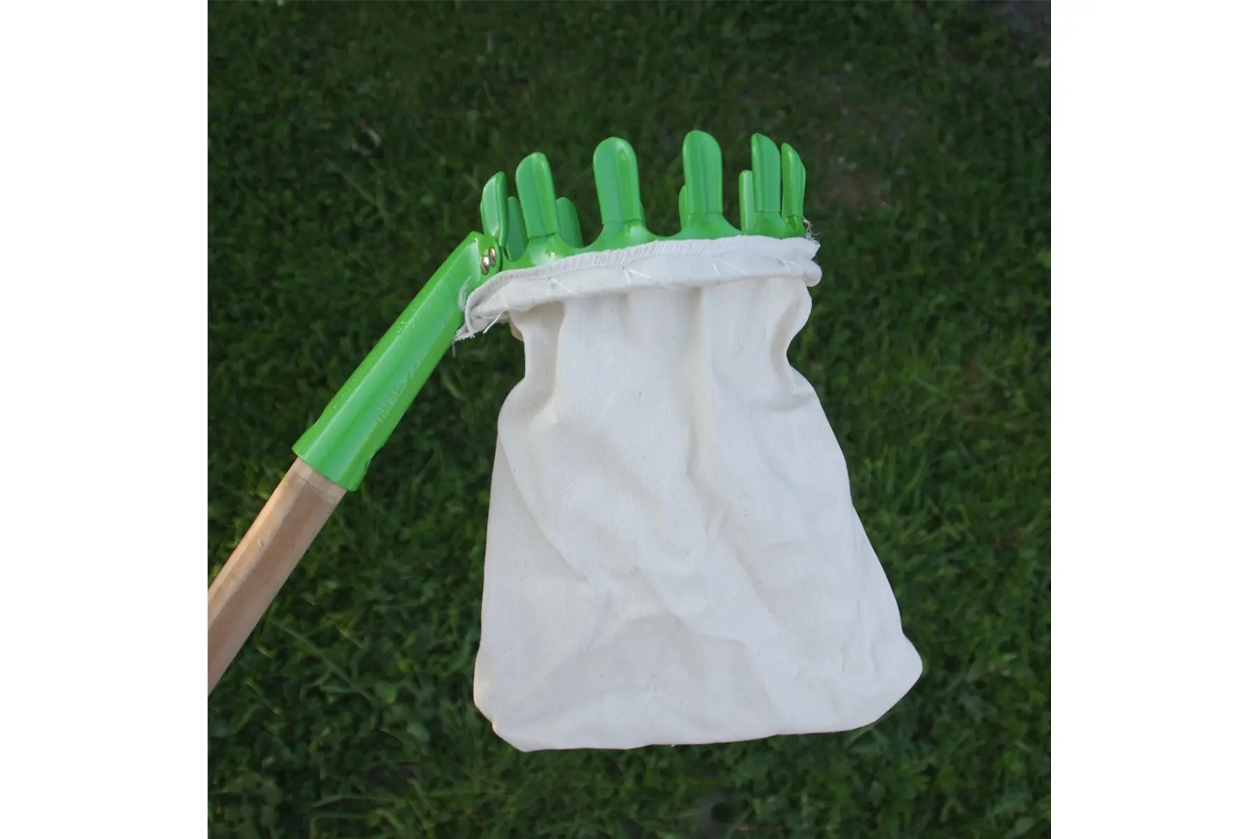 De plukhulp is een opvangnet met afgeronde plukpinnen, een onmisbaar tuingereedschap om fruit vanop de grond te oogsten. Met deze fruitplukker geraak je tot bij de appel of peer in de boom, steek het steeltje tussen 2 plukpinnen en trek zachtjes totdat de vrucht lost van de tak en in het opvangnet valt. Zo oogst je fruit zonder de vruchten te beschadigen en zonder ladder.