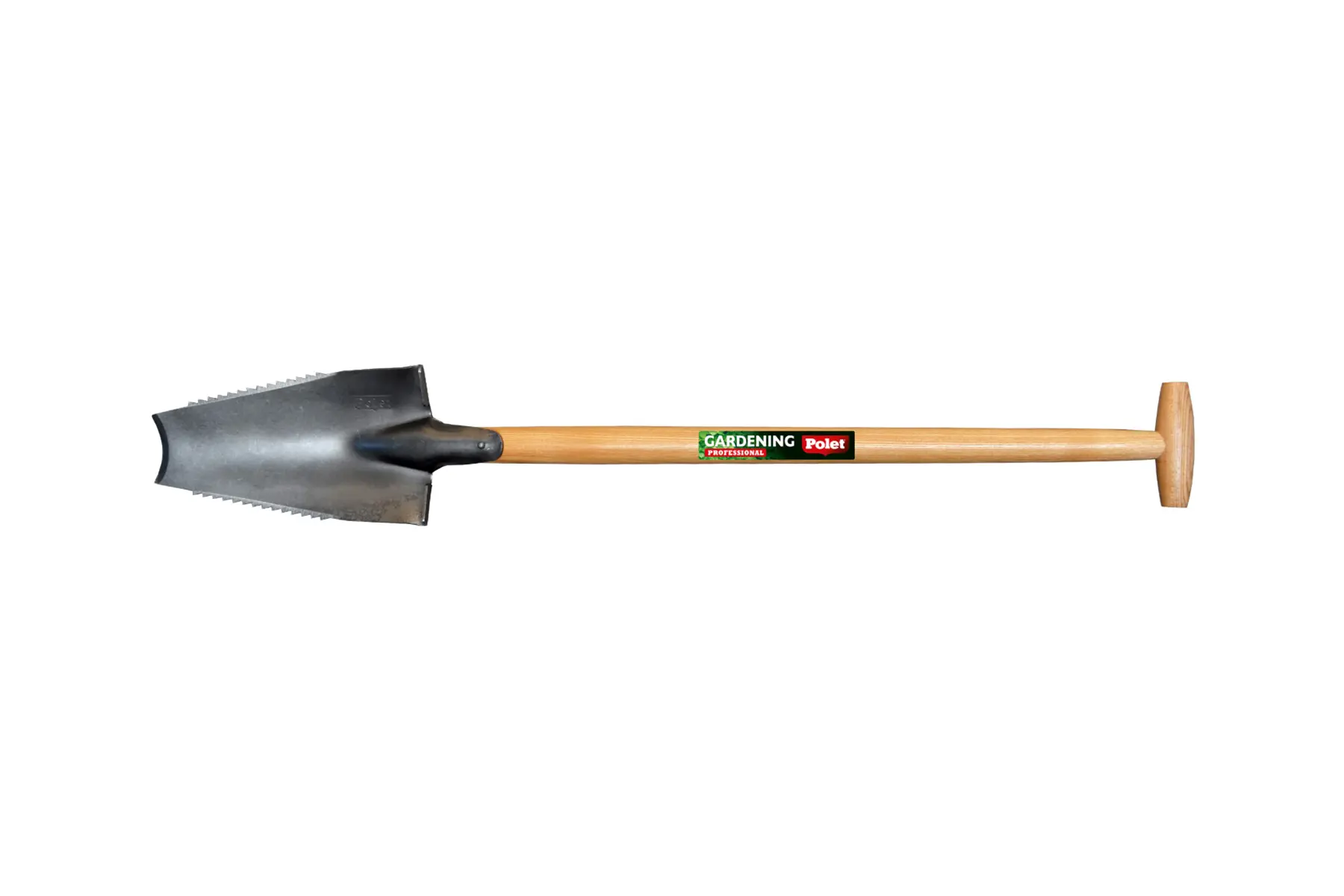 De boomwortelspade en zaag in 1 van Polet is vervaardigd uit extra gehard staal met voetsteunen. Met de essen T-steel kan je de spade makkelijk hanteren.