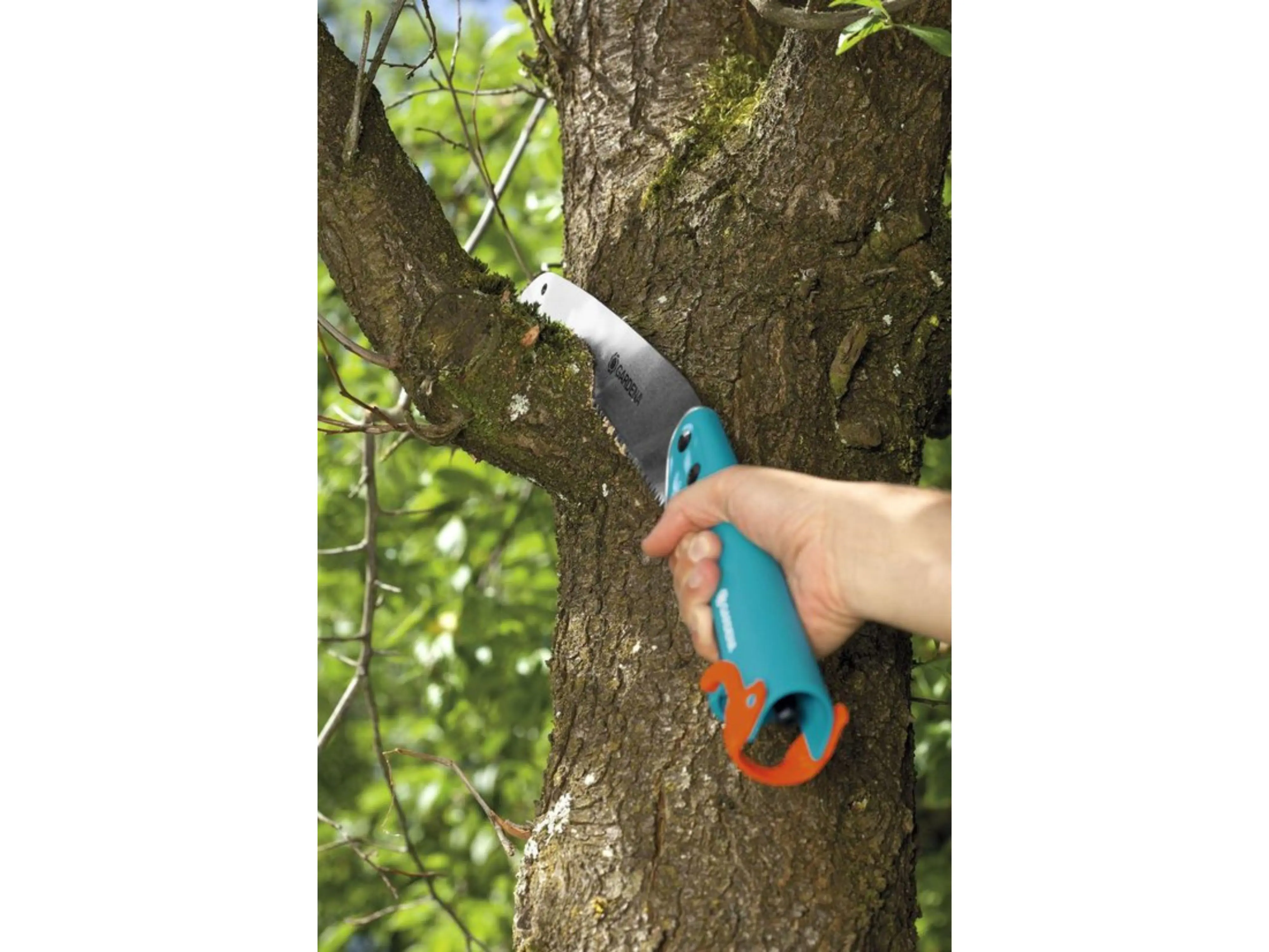 De ergonomische handgreep met softgrip en slipstop zorgt voor veilig en comfortabel werken. Te combineren met een Gardena combisystem telescoopsteel (exclusief) voor stabiel zagen op hoogte. Inclusief zaagbladbescherming en ophangoog.