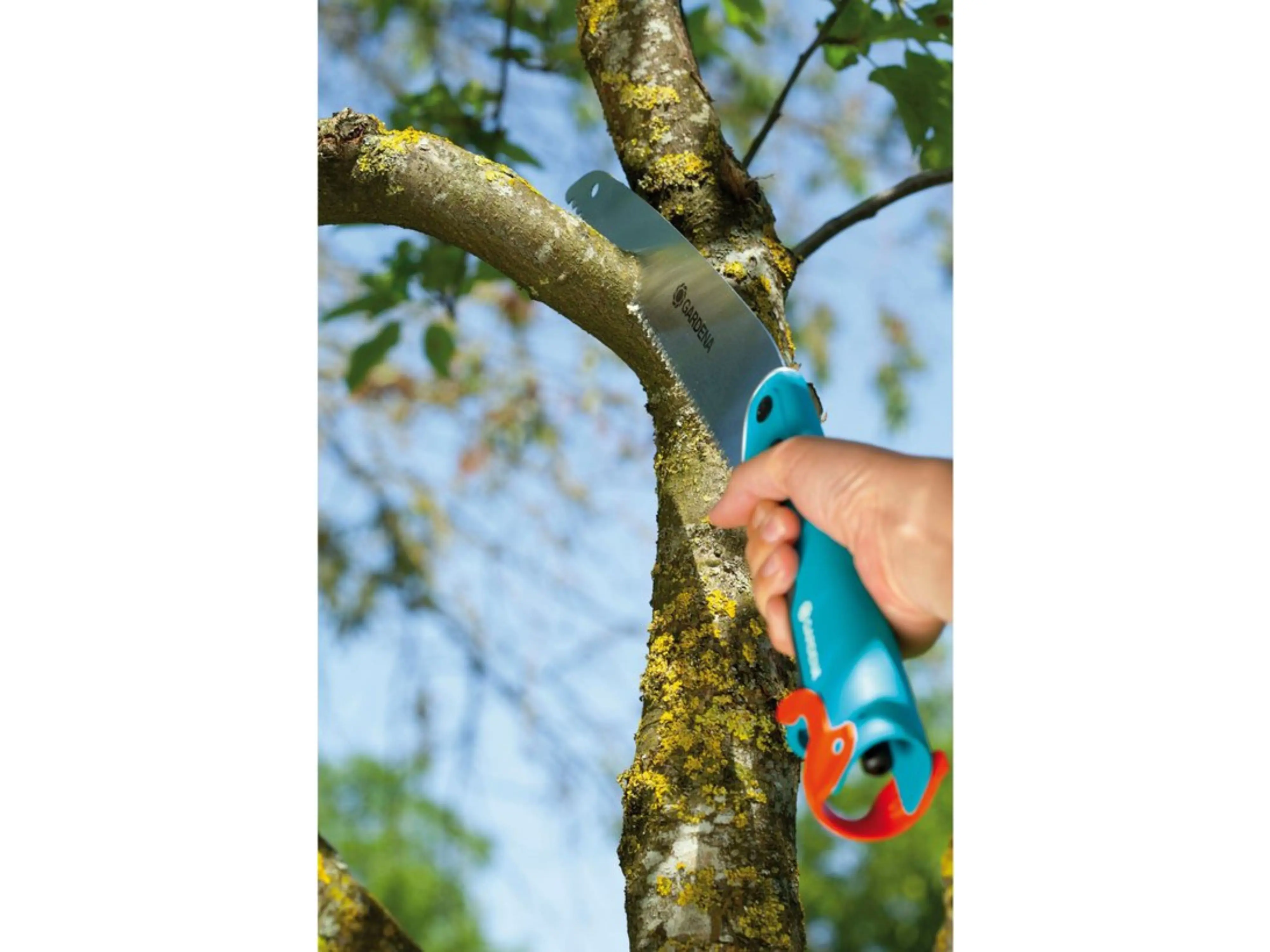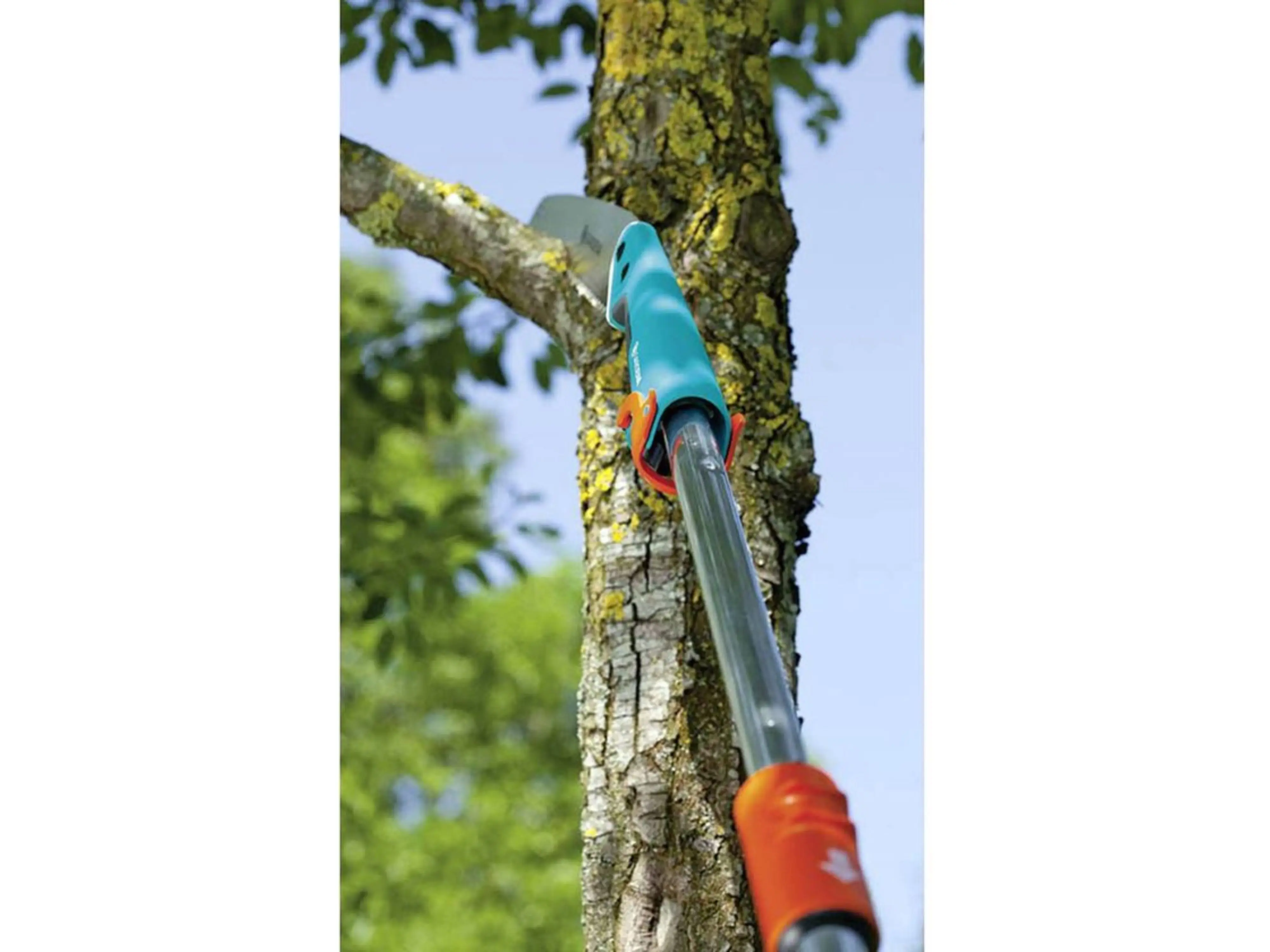Te combineren met een Gardena combisysteem (telescoop)steel voor veilig werken tot ca. 5 meter hoogte. De anti-slip handgreep met zachte componenten en extra stop zorgt voor maximale controle en veiligheid. Inclusief zaagbladbescherming en ophangoog voor eenvoudig opbergen.