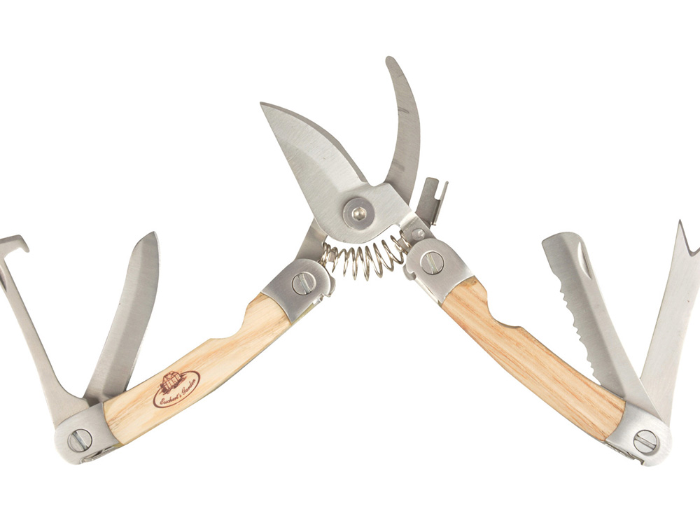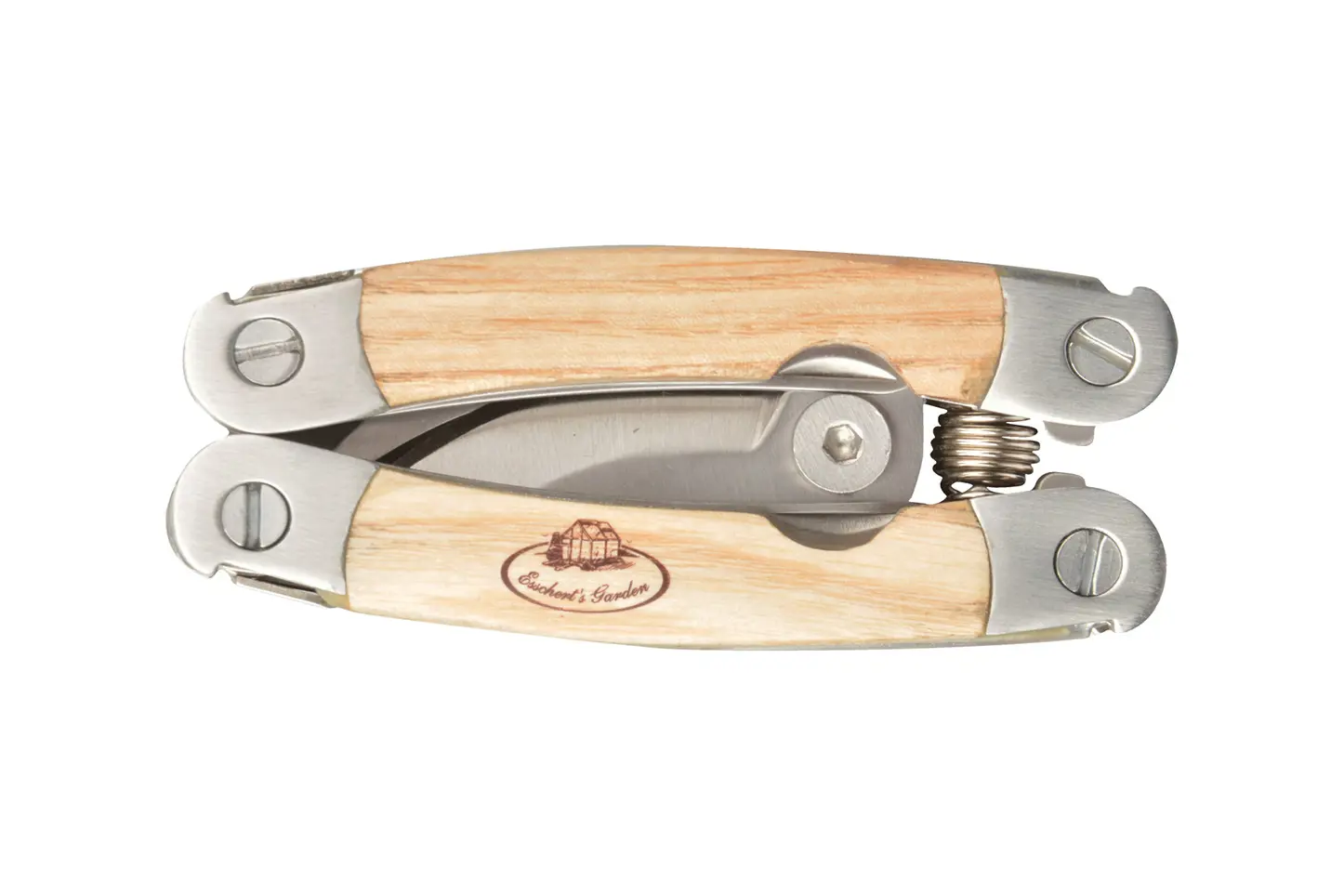 Dit 5-in-1 tuingereedschap van Esschert Design is volledig inklapbaar. Het is gemaakt van hoogwaardig roestvrij staal en heeft een essenhouten handvat. Om het multitool in goede conditie te houden, maak het na gebruik schoon en berg het droog op.