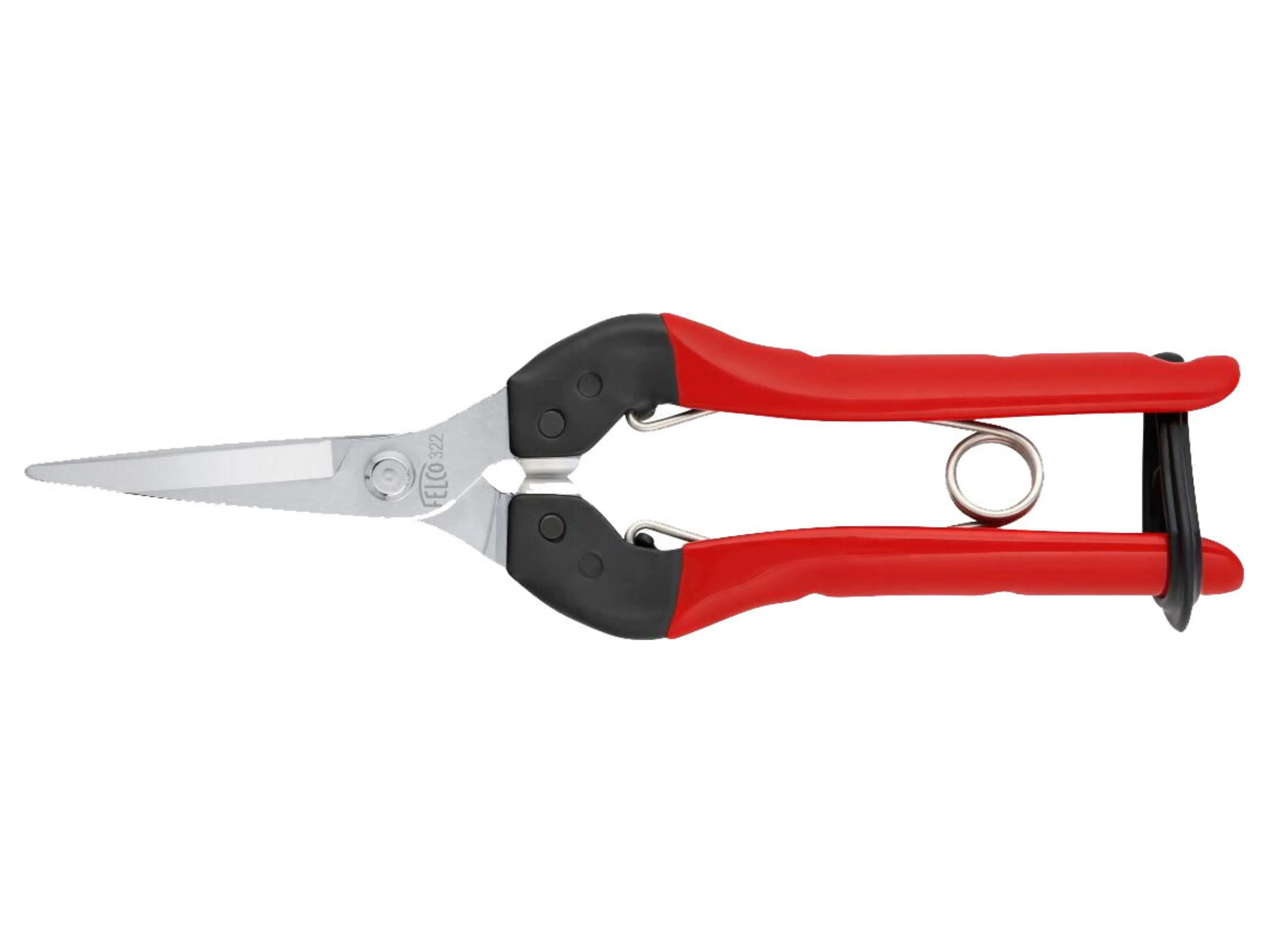 De oogst- en snoeischaar FELCO 322 is extreem hanteerbaar en uitgerust met een gekromd mes waarmee je de steel van groenten en fruit, maar ook bloemstelen kan knippen zonder risico dat voor beschadiging.