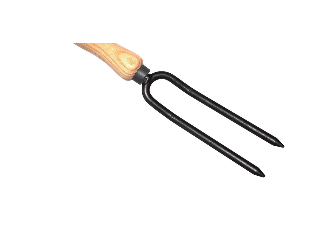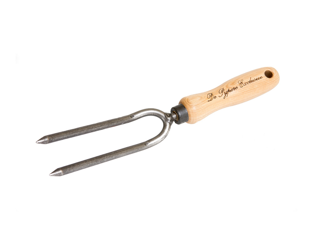 Mooie exclusieve wiedvork met twee tanden en essenhouten handvat (140 mm). Met dit kwalitatief en duurzaam handgereedschap ga je alle vervelende onkruiden met een diepe penwortel te lijf, is het nu in de groentetuin, plantenborder of verhoogte kweektafel.