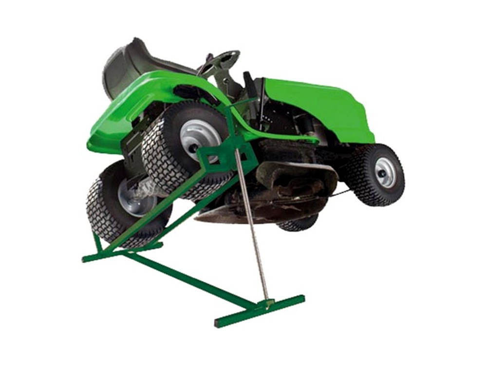 Je kan zowel voorwaarts als achterwaarts de krik oprijden. Met de draaihendel til je de zitmaaier veilig de hoogte in aan één zijde. De krik met hendel vouwt vlot dicht en vraagt weinig opslagruimte. Dit liftsysteem is eveneens geschikt voor quads.