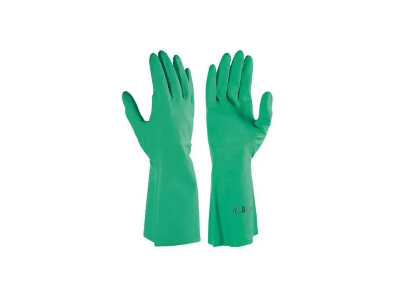 Deze handschoenen zijn volledig gemaakt van synthetisch rubber (Nitrile), dat uitstekende bescherming biedt tegen een breed scala aan chemicaliën. Het lange manchet zorgt ervoor dat ook je polsen en onderarmen veilig bedekt zijn, zodat je zonder zorgen kunt werken.