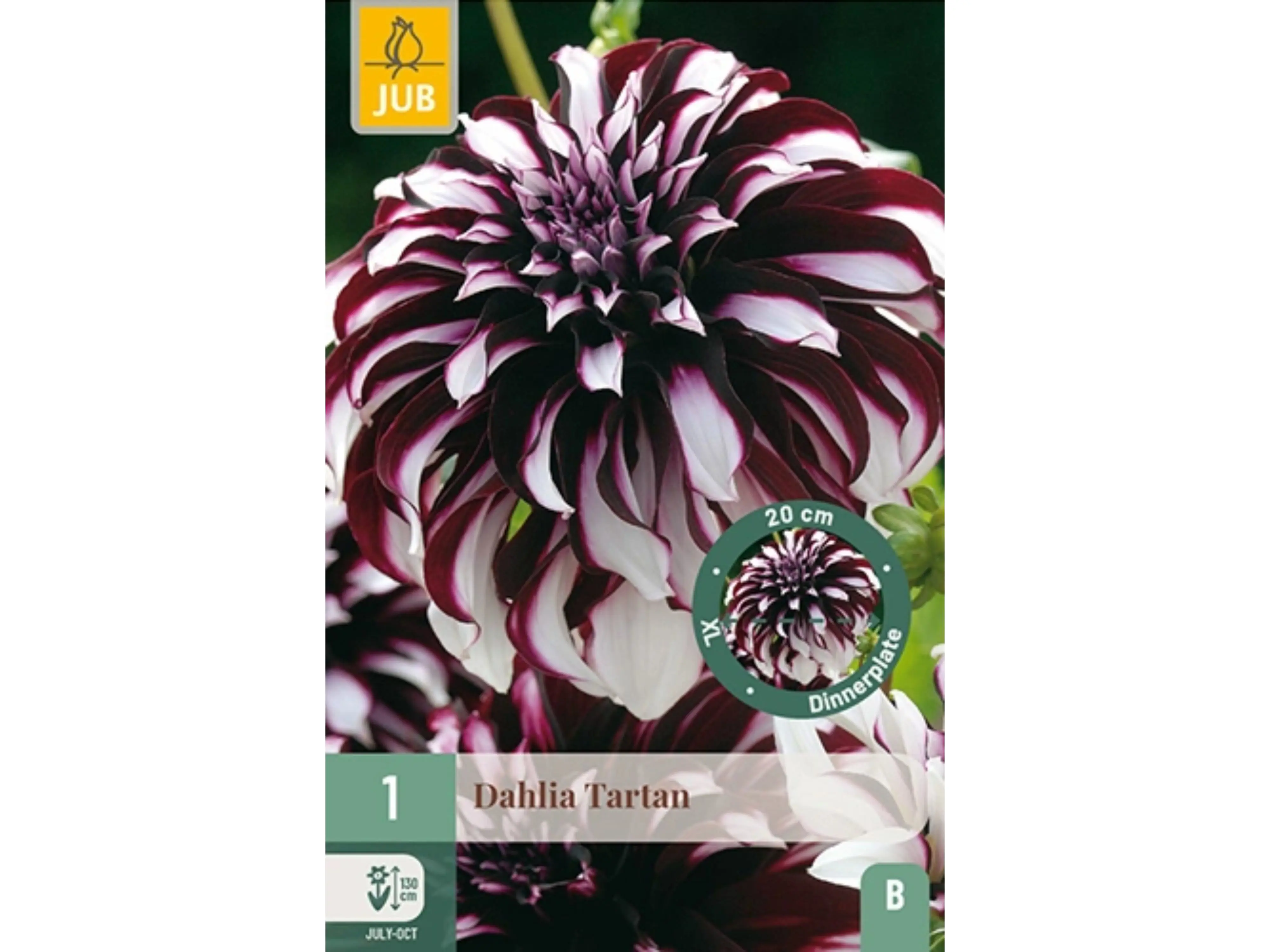 Dahlia ‘Tartan’ combineert prachtig met vaste planten en andere dahlia’s en vormt met haar imposante wit-rode bloemen een echte blikvanger in de border. Bovendien is deze dahlia een uitstekende snijbloem die lang houdbaar blijft op de vaas; het beste moment om de bloemen te snijden is vroeg op de dag, waarna de stelen direct in lauwwarm water met snijbloemenvoedsel worden gezet.