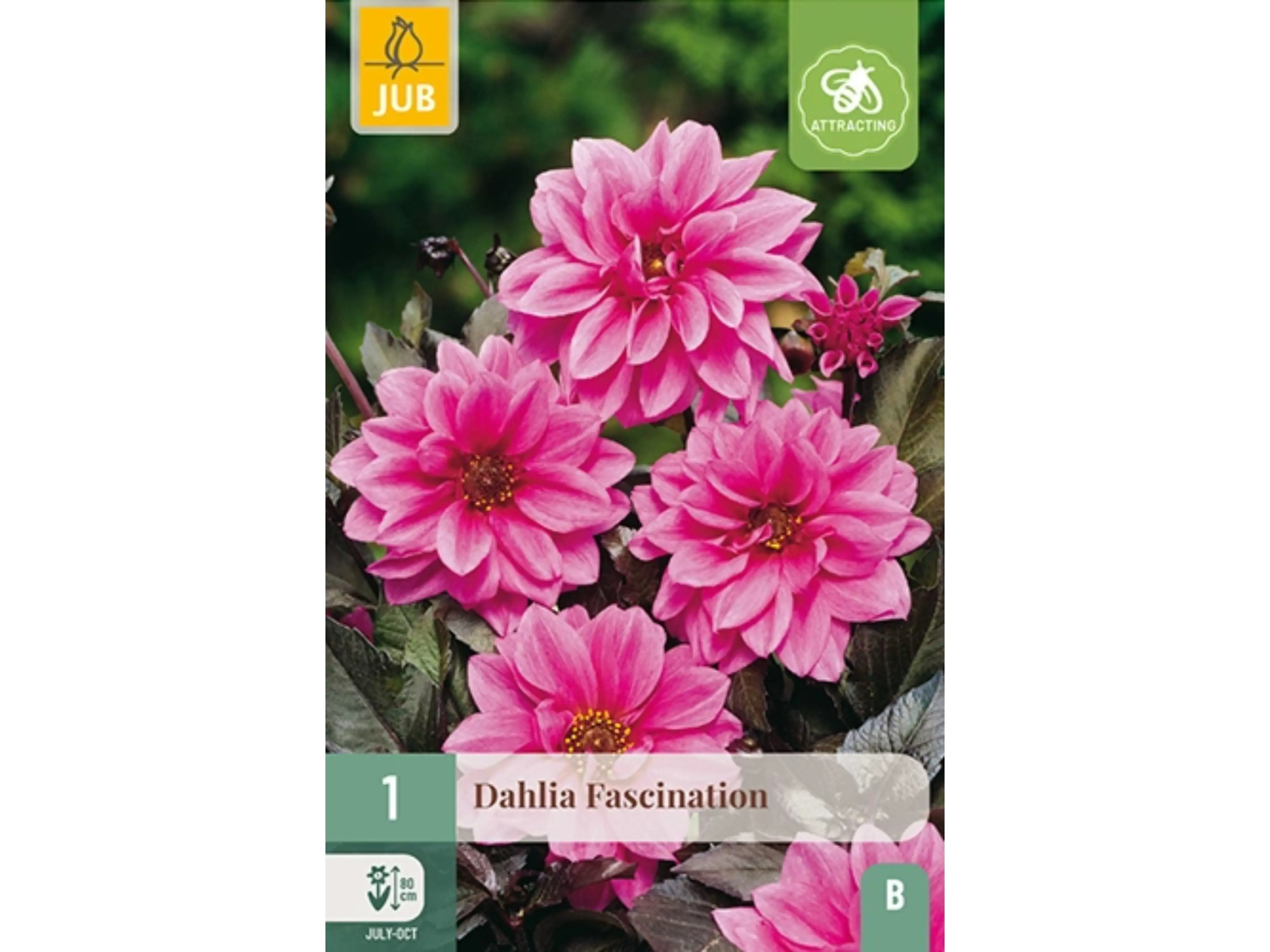 De roze dahlia ‘Fascination’ is een echte blikvanger in de zomertuin. Niet alleen de bloemen trekken de aandacht, ook het donkere blad geeft deze dahlia een bijzondere uitstraling in de border. Van juli tot aan de eerste nachtvorst bloeit ze uitbundig. Met een hoogte van circa 80 cm kan het soms nodig zijn de bloemstelen wat steun te geven.