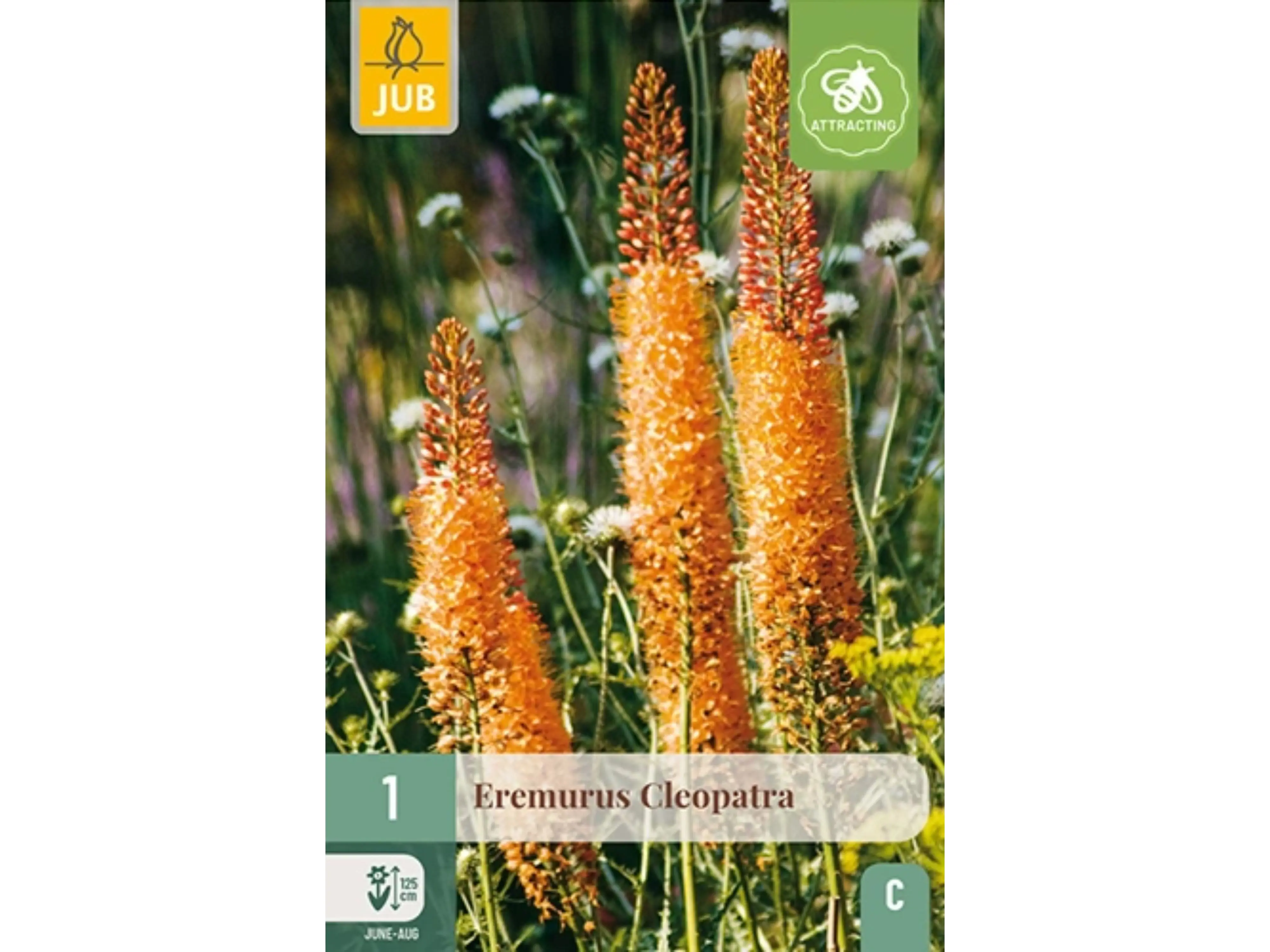 De Eremurus ‘Cleopatra’ is een dankbare zomerbloeier die maandenlang kleur en hoogte in de tuin brengt. Van juni tot augustus verschijnen indrukwekkende pluimen van meer dan 100 stervormige bloemetjes in een zachte abrikoos-oranje tint. Met een hoogte van ongeveer 125 cm zijn de bloemen echte blikvangers, en soms kan het nodig zijn de stelen extra te ondersteunen.