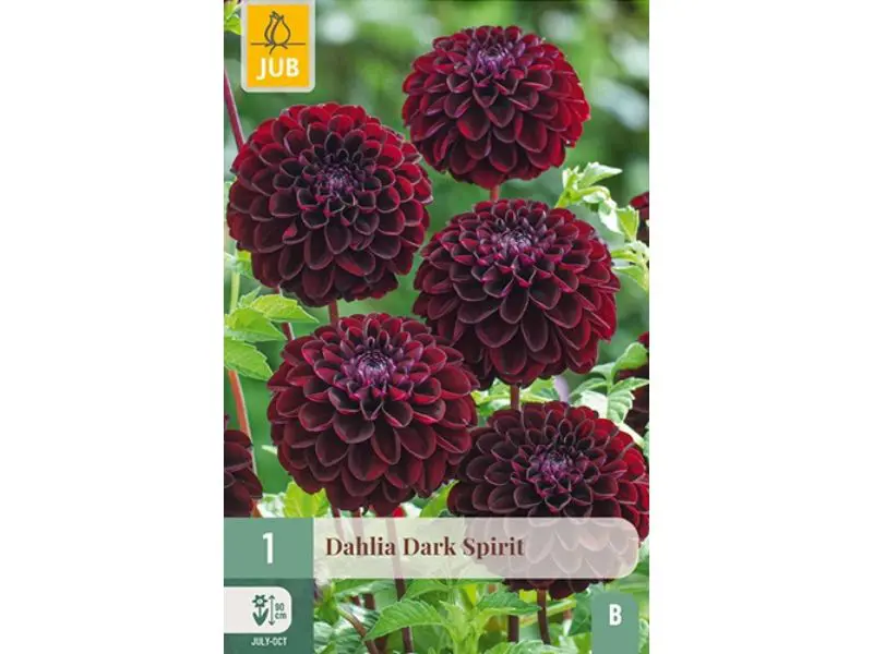 De pompon dahlia Dark Spirit valt op door zijn kogelronde bloemen en is een dankbare zomerbloeier die maandenlang kleur en plezier brengt. Van juli tot de eerste nachtvorst bloeit deze variëteit uitbundig en bereikt ze een hoogte van ongeveer 80 cm. Soms hebben de bloemstengels wat steun nodig om recht te blijven.
