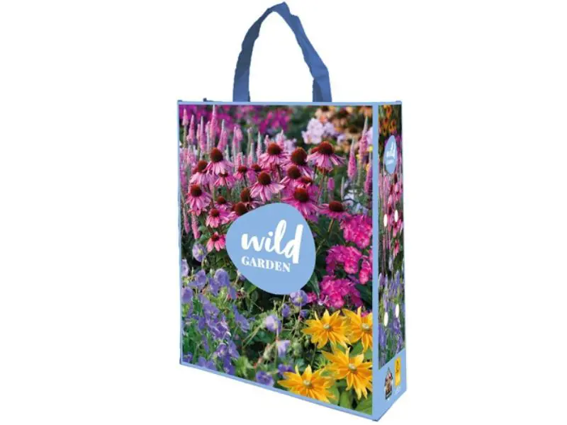 In deze Wild Garden shopping bag vind je een harmonieuze mix van vijf verschillende bloemen die niet alleen je tuin opfleuren, maar ook bijen en vlinders aantrekken: Echinacea, Rudbeckia, Phlox, Geranium en Veronica. Na het zorgvuldig uitplanten van deze knollen, krijg je niet alleen een prachtige bloementuin, maar kun je de tas zelf ook nog eens hergebruiken voor je boodschappen en andere dagelijkse benodigdheden. Het klittenbandje zorgt ervoor dat je tas altijd netjes gesloten blijft.