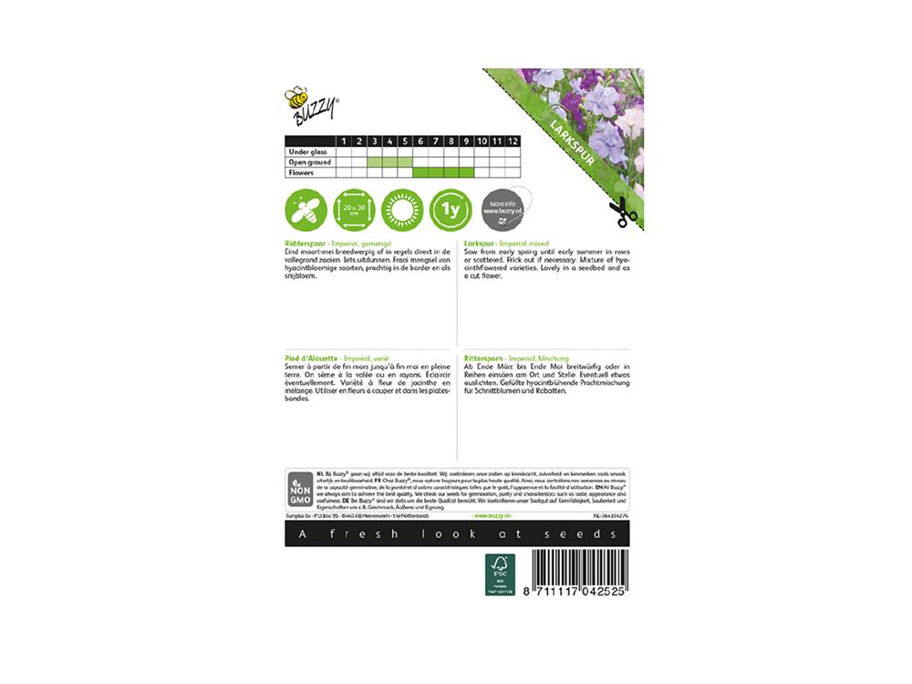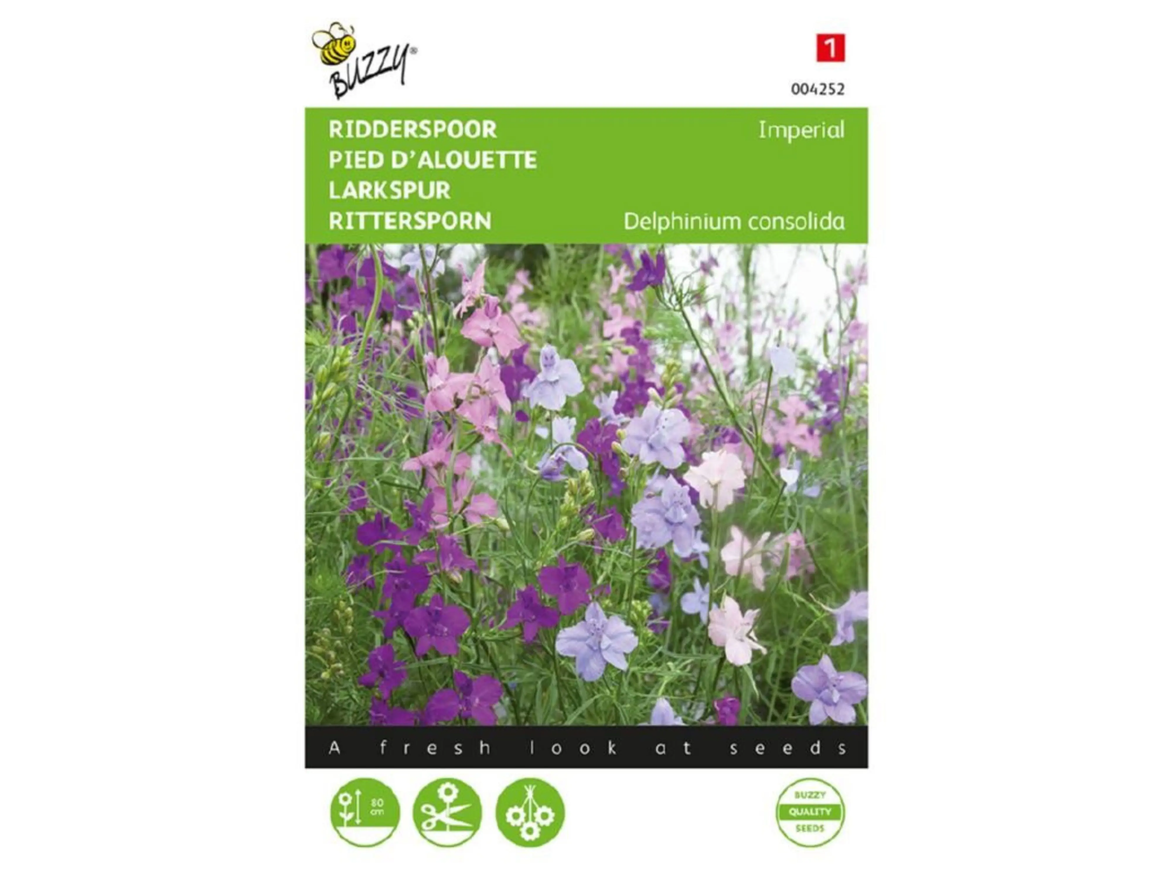 Ridderspoor Imperial in een fraai kleurenmengsel. De planten bloeien in blauwe, lilaroze en witte tinten. Prachtig om in de border te verwerken en schitterend op de vaas. Naast een uitstekende droogbloem, wordt de plant ook druk bezocht door vlinders en bijen