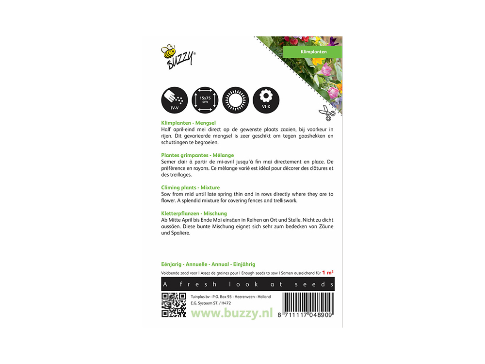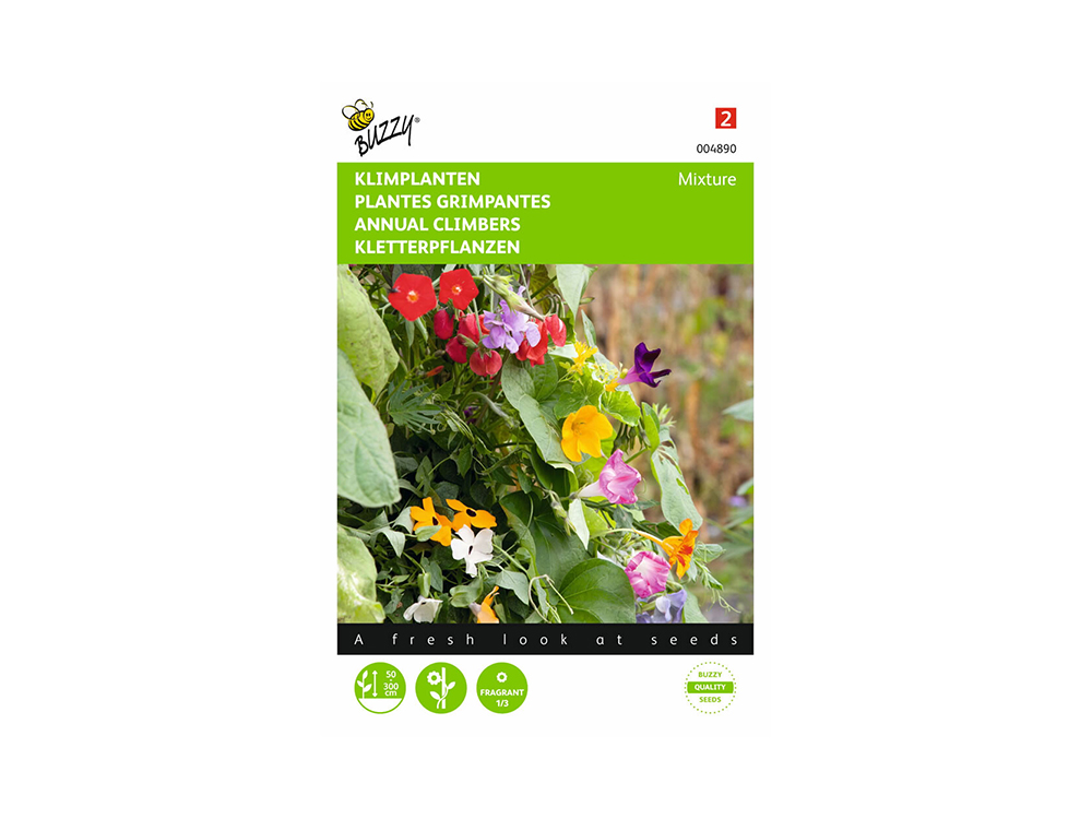 Dit fraaie mengsel van diverse eenjarige klimplanten zal je qua vorm en kleur versteld doen staan. Perfect om langs een muur of gaas te kweken!