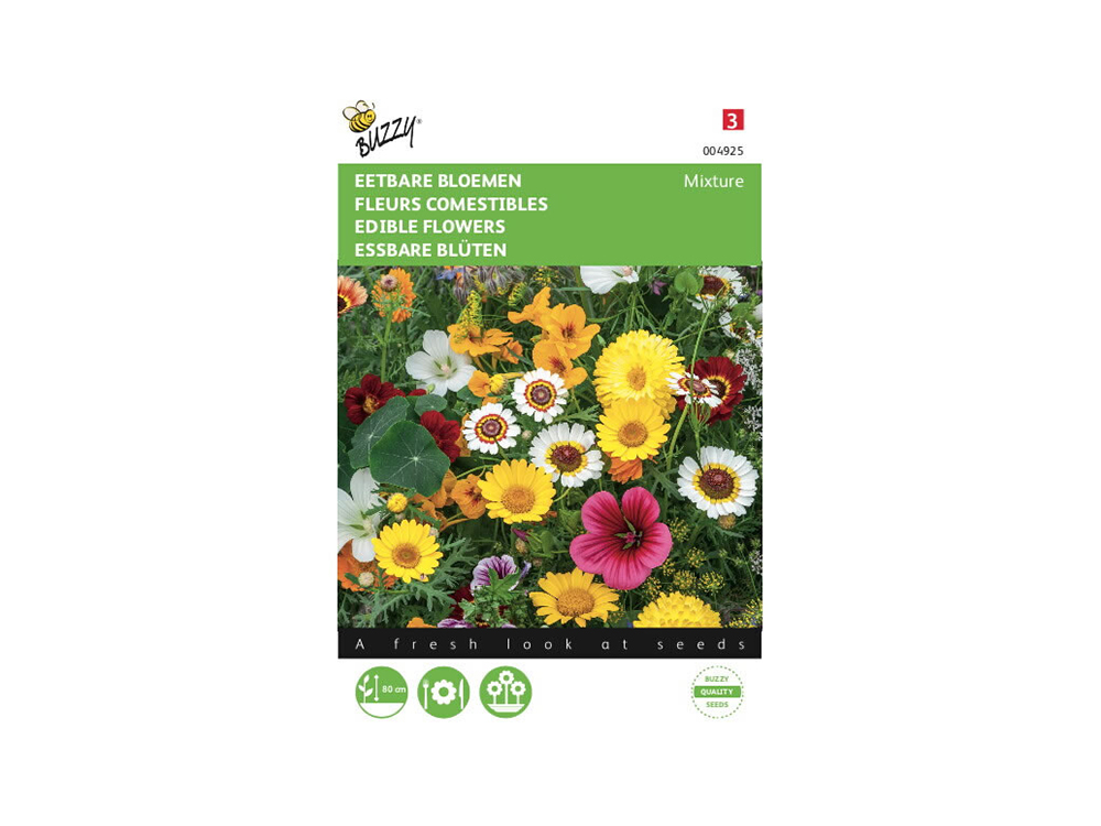 Een aantrekkelijk mengsel met kleurrijke bloemen die de tuin en je bord opfleuren! De éénjarige bloemen worden tussen 40 en 80 cm hoog en bloeien gedurende een lange periode. Het bloemenmengsel kan je zaaien tussen maart en eind juni.