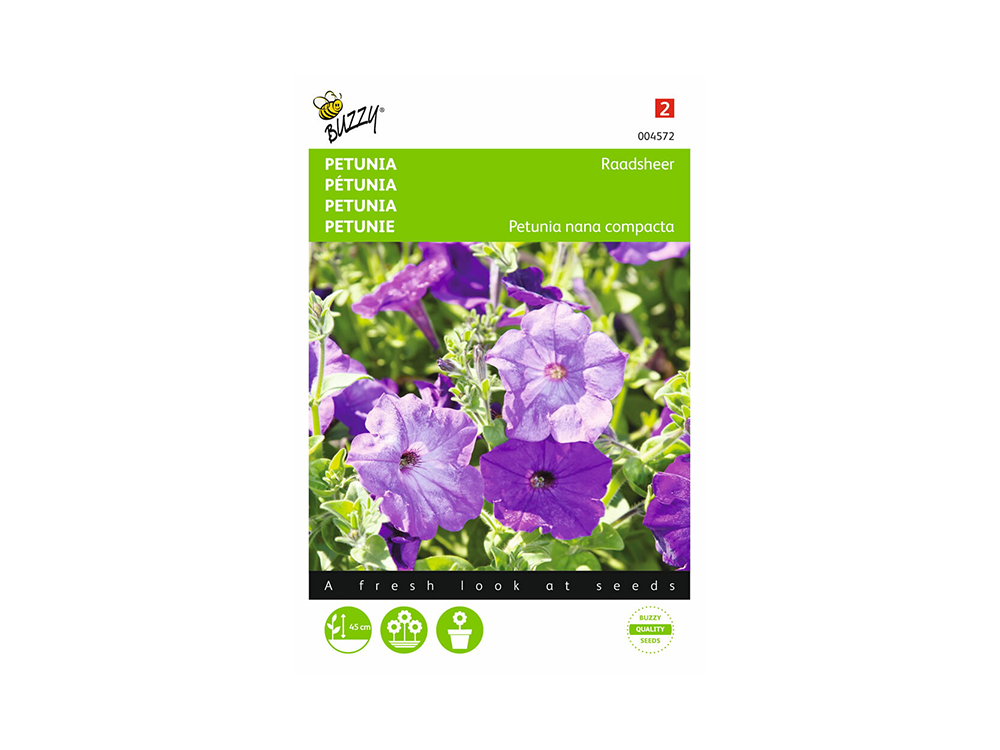 Petunia Raadsheer kan je zaaien vanaf februari tot half april in kweekbakje bij ca. 20ºC, of vanaf begin april tot mei onder ‘koud’ glas. Begin mei buiten uitplanten.