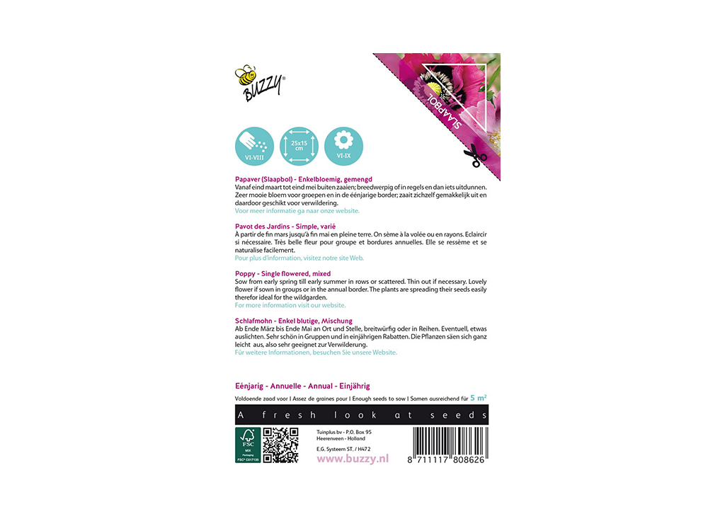 Papaver (slaapbol) is een prachtige bloem met diverse lilaroze tinten en donkere accenten. Ideaal voor grote groepen en in de éénjarige border. De plant zaait zichzelf gemakkelijk uit en is daardoor geschikt voor verwildering.
