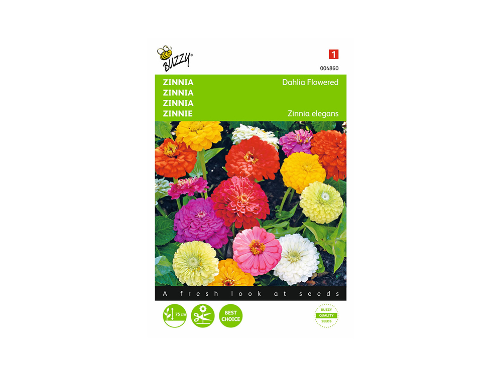 Zinnia dahliabloemig gemengd is een eenjarig zaadmengsel met grote bloemen die op dubbelbloemige Dahlia's lijken. De stelen worden 80 cm lang. Geschikt als snijbloem, maar ook toepasbaar in borders en perken.
