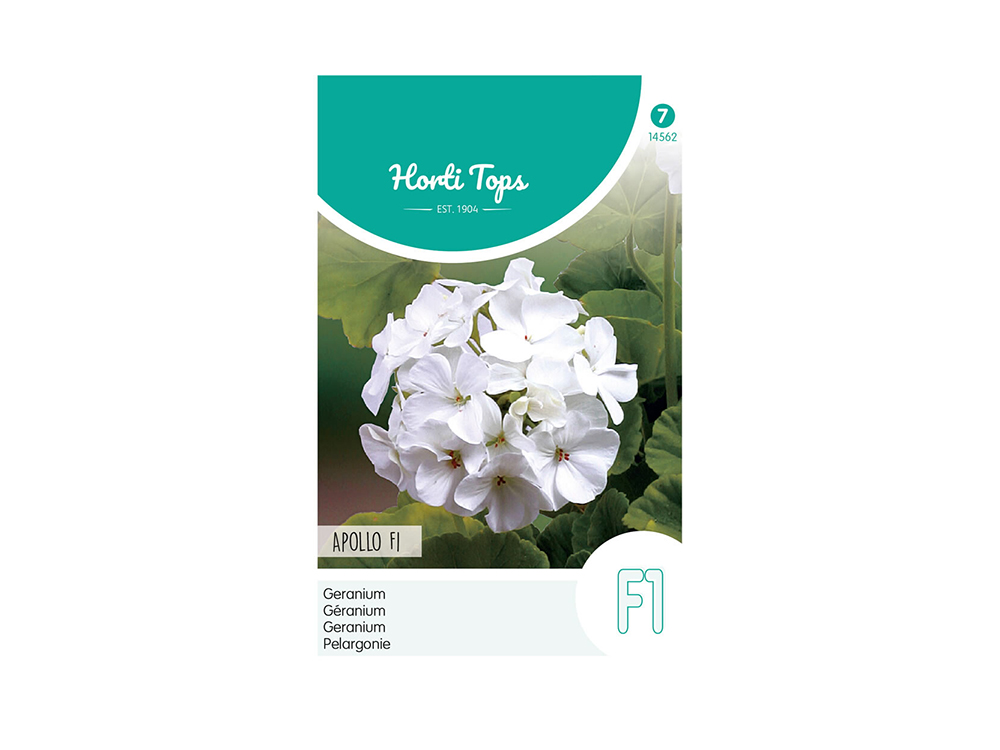 Geranium Apollo Wit F1, de pelargonium beter gekend als de geranium. Sinds jaar en dag één van de meest populaire balkonbakplanten! Dit zadenmengsel bestaat uit een prachtige witte soort, ideaal voor potten, schaal- en perkbeplanting.