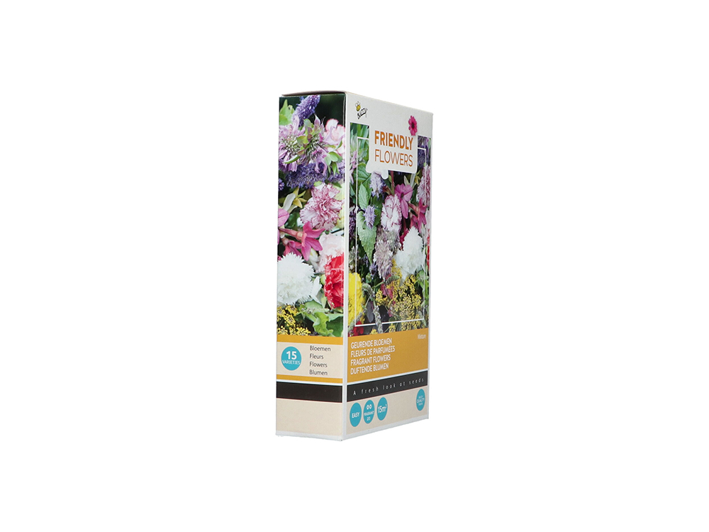 Dit prachtige bloemenmengsel bevat 15 soorten bloemen, allemaal heerlijk geurend, en is speciaal samengesteld om je tuin te vervullen met aroma's van geurige bloemen. De geur van deze bloemen komt meestal sterker naar voren naarmate de avond valt. Ze worden bestoven door insecten die de geurige bloemen weten te vinden met hun reukzin.