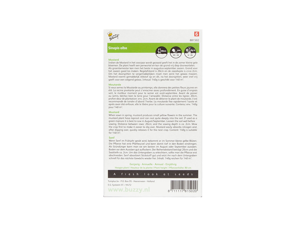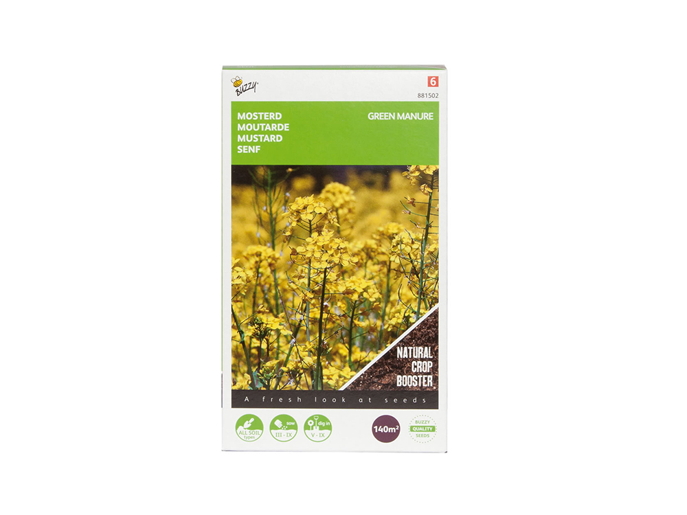 Mosterd (Sinapis alba) is een snelle bodembedekker die in 6 tot 8 weken de grond tot wel 70 cm diep kan doorwortelen. De prachtige gele bloei is bovendien zeer aantrekkelijk voor bijen, hommels en vlinders.