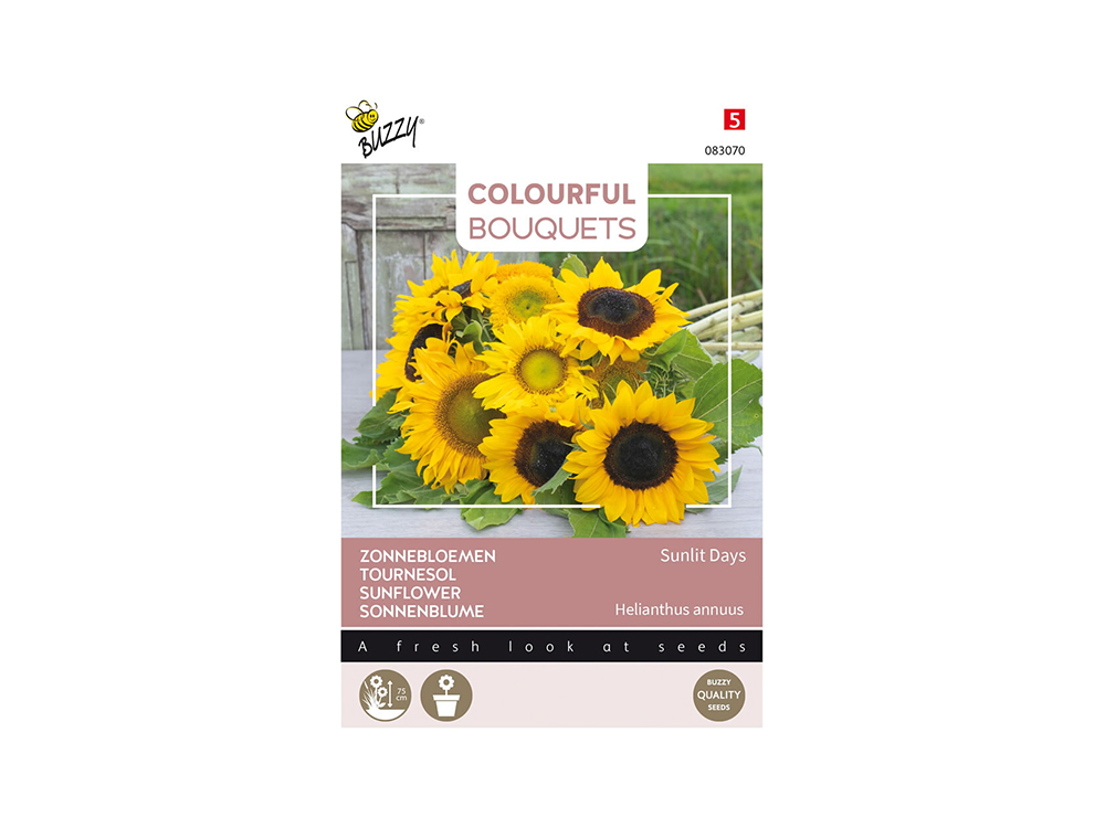 Zonnebloem Sunlit Days is een halfhoog ras dat uitstekende snijbloemen oplevert. Ook in potten op het terras of balkon kan Sunlit Days gekweekt worden. Voorzaaien kan vanaf maart tot eind april binnenshuis of vanaf april tot juni buiten op de plaats van bestemming. Uitplanten kan na 5 tot 6 weken.