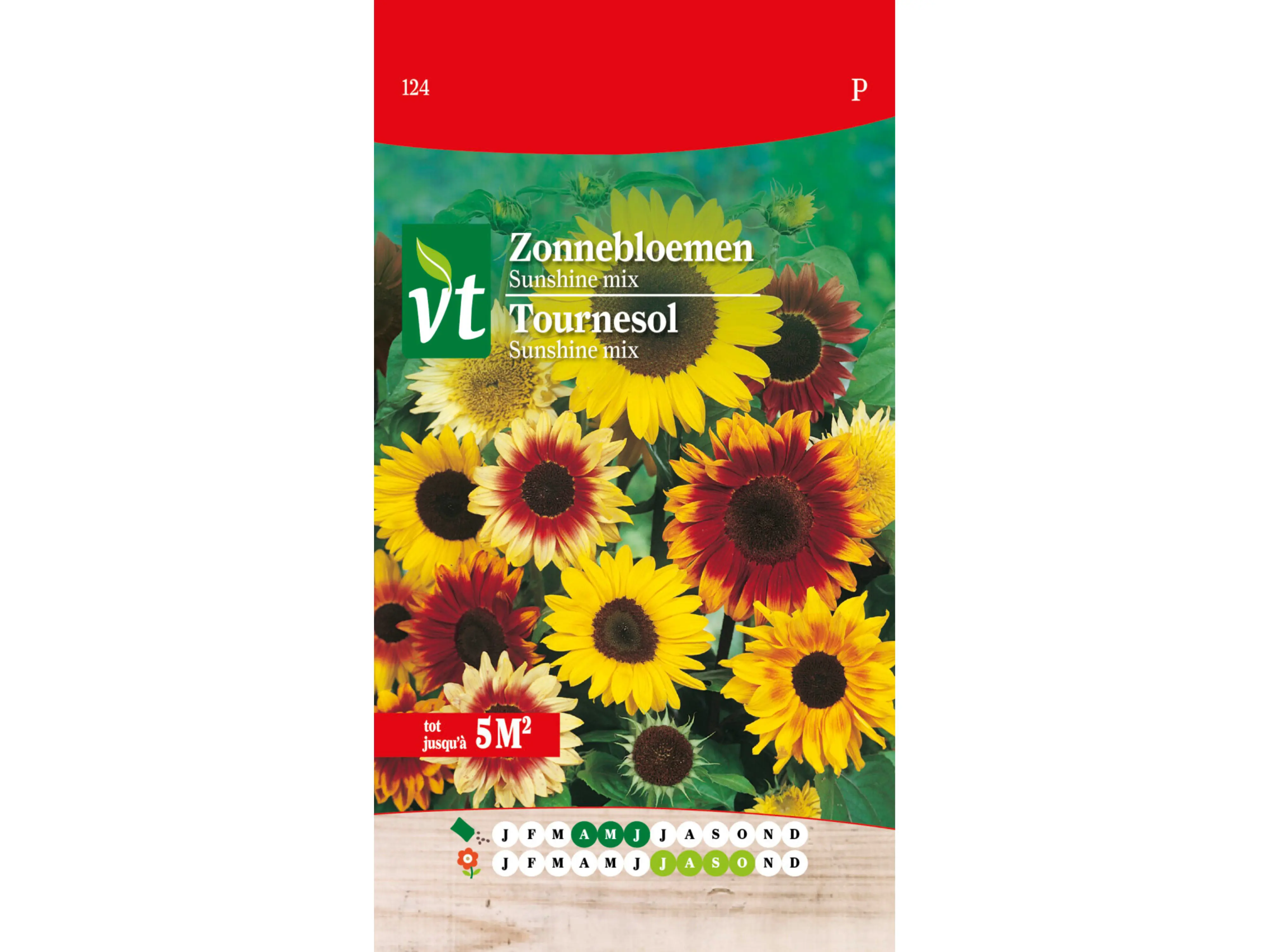 Ter plaatse gezaaid vanaf april tot begin juni, zullen de bloemen een hele zomer lang bloeien, tot eind oktober. Het zonnebloemenzaad is gemengd met vermiculiet voor een betere verdeling. Meng de inhoud goed en zaai als de temperatuur hoog genoeg is. Zaai tussen april en juni in een goed bewerkte, onkruidvrije grond. Druk lichtjes aan en dek af met een laagje fijne aarde van ongeveer 1 cm. Water geven helpt de kieming in drogere periodes. Eens de planten zich gevestigd hebben, hoef je geen water meer te geven.