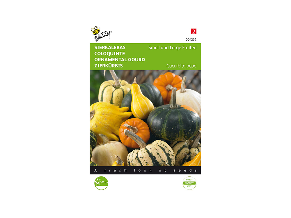 Sierkalebas klein en groot gemengd wordt vooral gebruikt bij het bloemschikken en het maken van decoraties.Zaai sierpompoenen vanaf april/mei direct in de vollegrond.