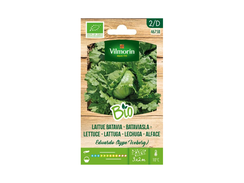 Bataviasla Eduardo van het type Iceberg is een snelgroeiend ras dat mooie ronde kroppen vormt. De bladeren zijn groen-blond gekleurd en hebben een knapperige bite. Bataviasla is goed bestand tegen opschieten. De zaden van Vilmorin zijn afkomstig van biologische teelt.