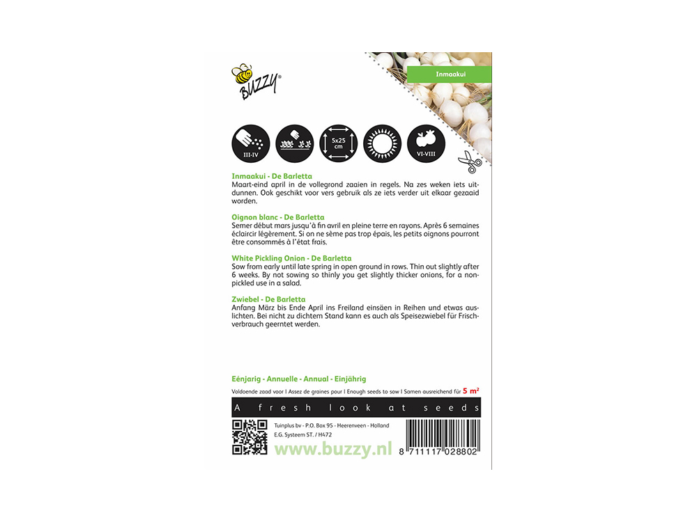 Zaai de zaden van inmaakuien Barletta van begin maart tot eind april in de vollegrond in rijen. Dun de planten na ongeveer zes weken iets uit.