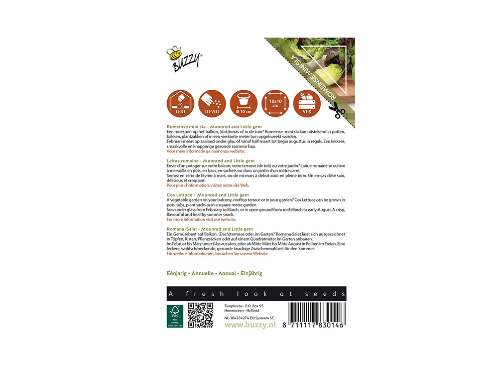 De compacte Romeinse mini sla kan perfect op het terras of balkon of in een vierkante moestuin gekweekt worden. Het is een knapperig en smaakvol ras voor in een salademix maar ook gebakken in de pan is deze kleine krop verrassend lekker.