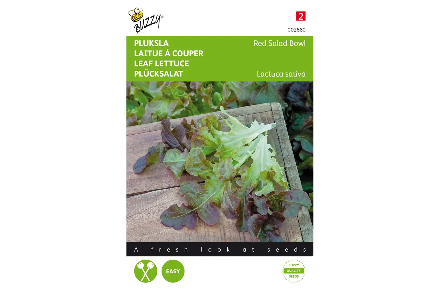 Pluksla Red Salad Bowl wordt ook wel eikenbladsla genoemd, omdat het blad lijkt op die van de rode Amerikaanse eik. De kleurstof in het blad (anthocyaan) geeft dit slaras een bijzondere smaak. De planten vormen vele zachte, gekrulde blaadjes. Wie van zachte sla houdt, zal dit ras zeker waarderen. Eikenbladsla groeit snel en geeft een gezond gewas.