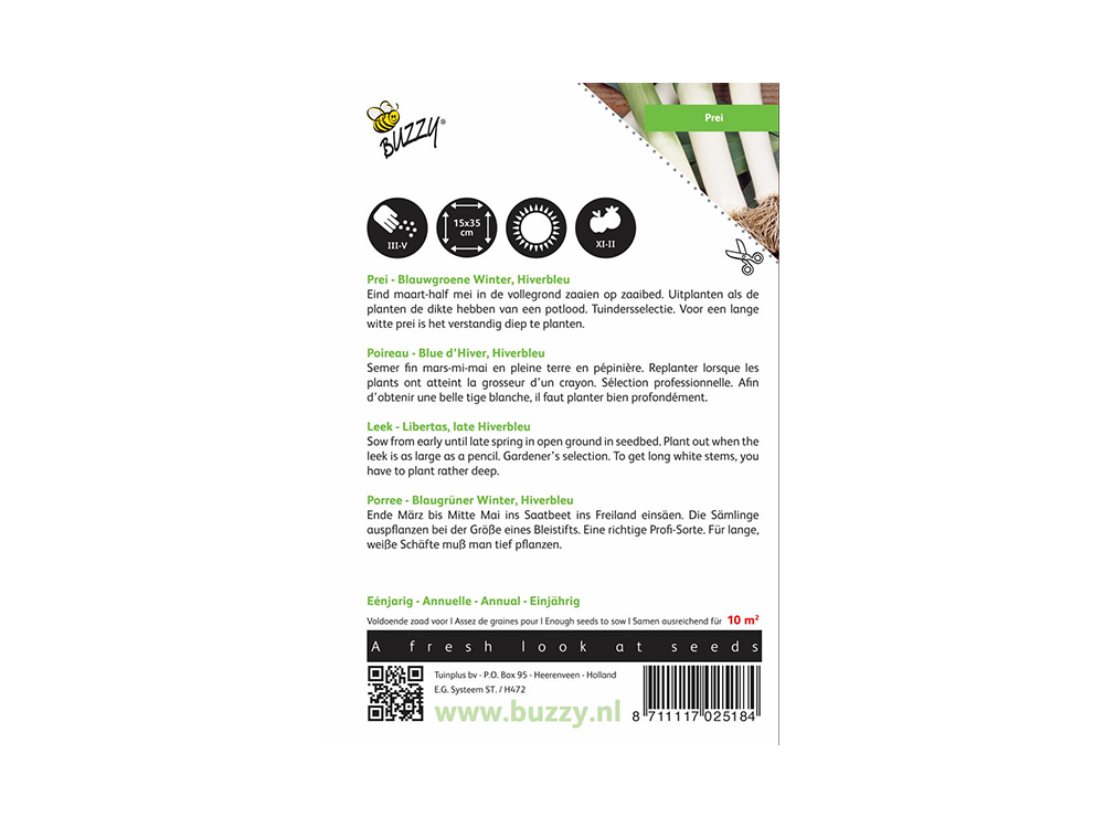 Prei Hiverbleu of blauwgroene winter is een speciaal geselecteerd ras voor de winterteelt. De planten hebben een blauwgroen blad en groeien na de vorstperiode fors uit met stevige witte schachten. De planten kunnen lang in de grond blijven staan.