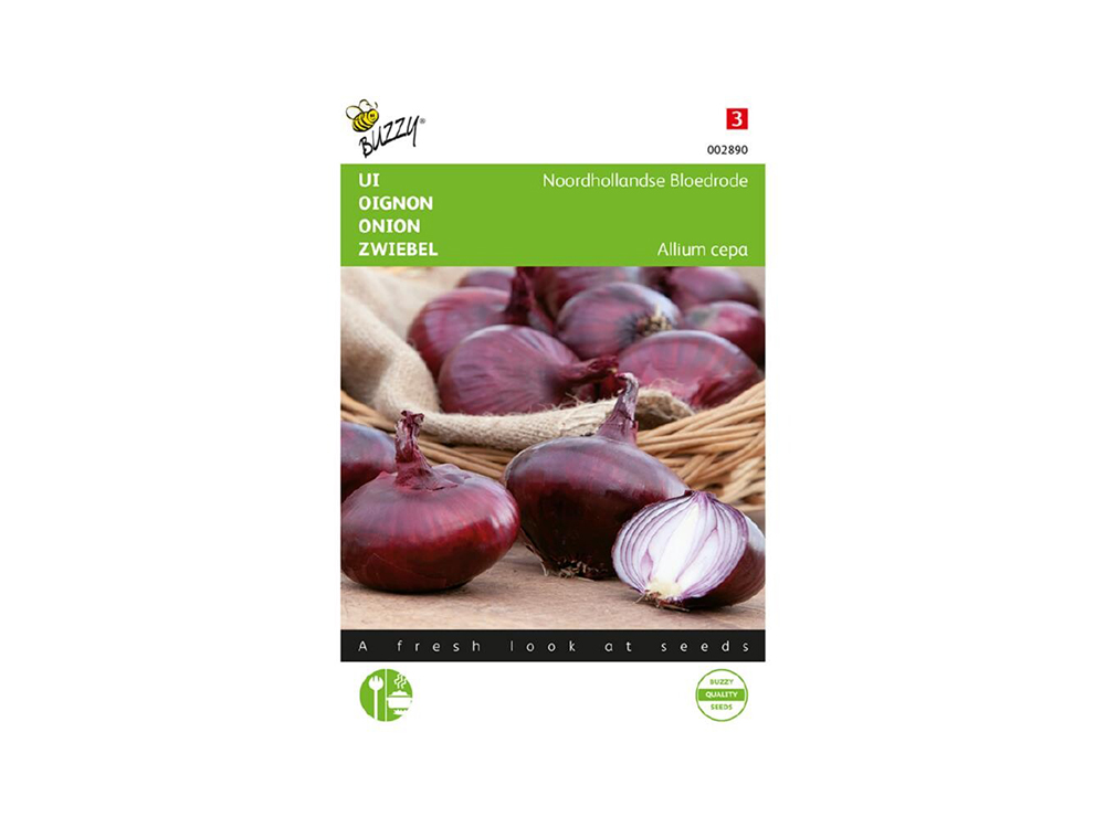 Zaai de zaden van de Noordhollandse Bloedrode uien van begin maart tot eind april in de vollegrond in rijen en dun ze iets uit. Deze pikant smakende ui kan zeer lang worden bewaard, mits je ze goed laat drogen voor het binnenhalen.
