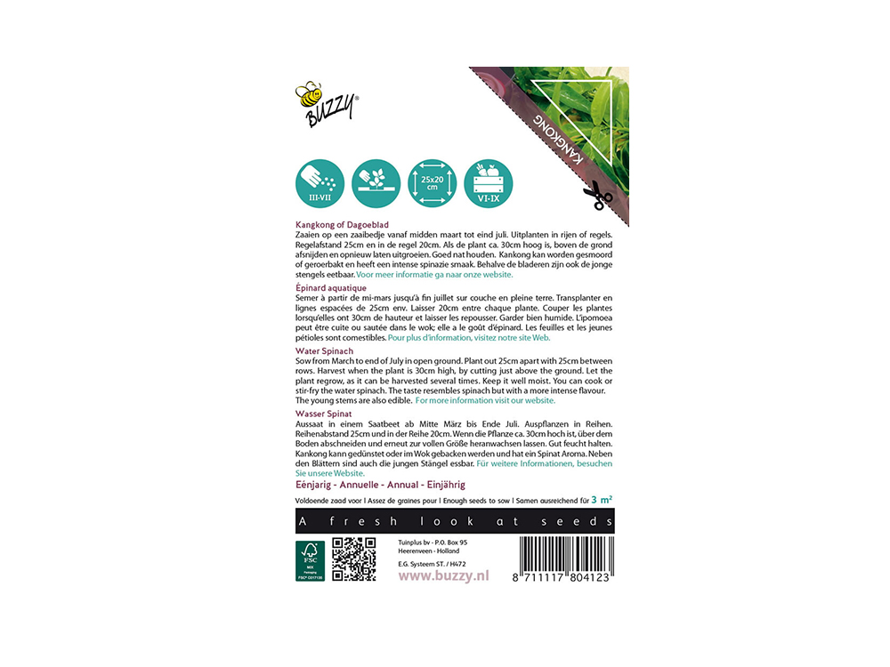 Zaai op een zaaibed vanaf midden maart tot eind juli. Plant uit in rijen of regels met een regelafstand van 25 cm en in de regel 20 cm. Als de plant ongeveer 30 cm hoog is, afsnijden boven de grond en opnieuw laten uitgroeien.