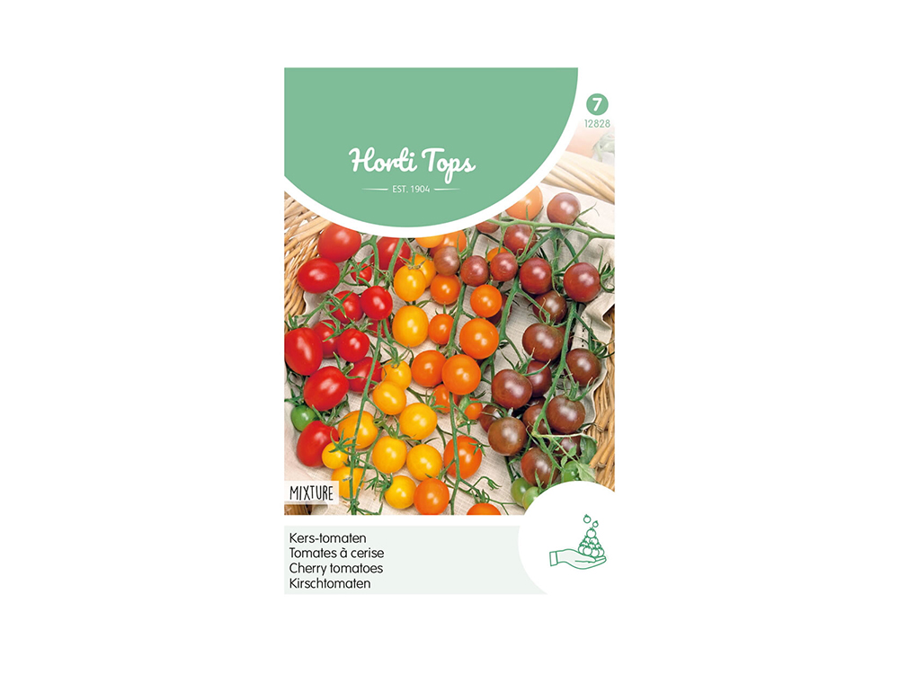 Kerstomatenmix Cherry: zaai vanaf eind februari in een zaaibakje. Zaai buiten onder glas als de temperatuur minimaal 20°C is, of iets later. Na verspenen kunnen ze in potten worden uitgeplant. Bevat vier soorten: Sweetie (rood), Cereza amarilla (geel), Bottondoro (oranje) en Black Cherry (zwart).