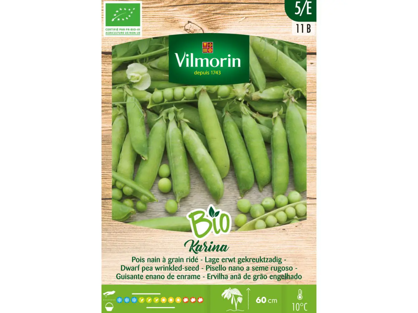 Kweek jouw eigen biologische erwten met de zaden van Vilmorin. Karina gekreuktzadig is een lage rechtop groeiende variëteit met donkergroene, rechte peulen. Elke peul bevat ongeveer 8 à 9 zaden.