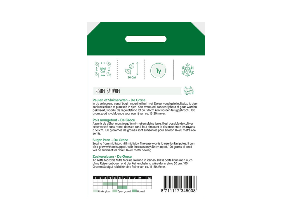 Peulen de Grace is een laagblijvend ras. Pluk de peulen als ze nog sappig zijn.
