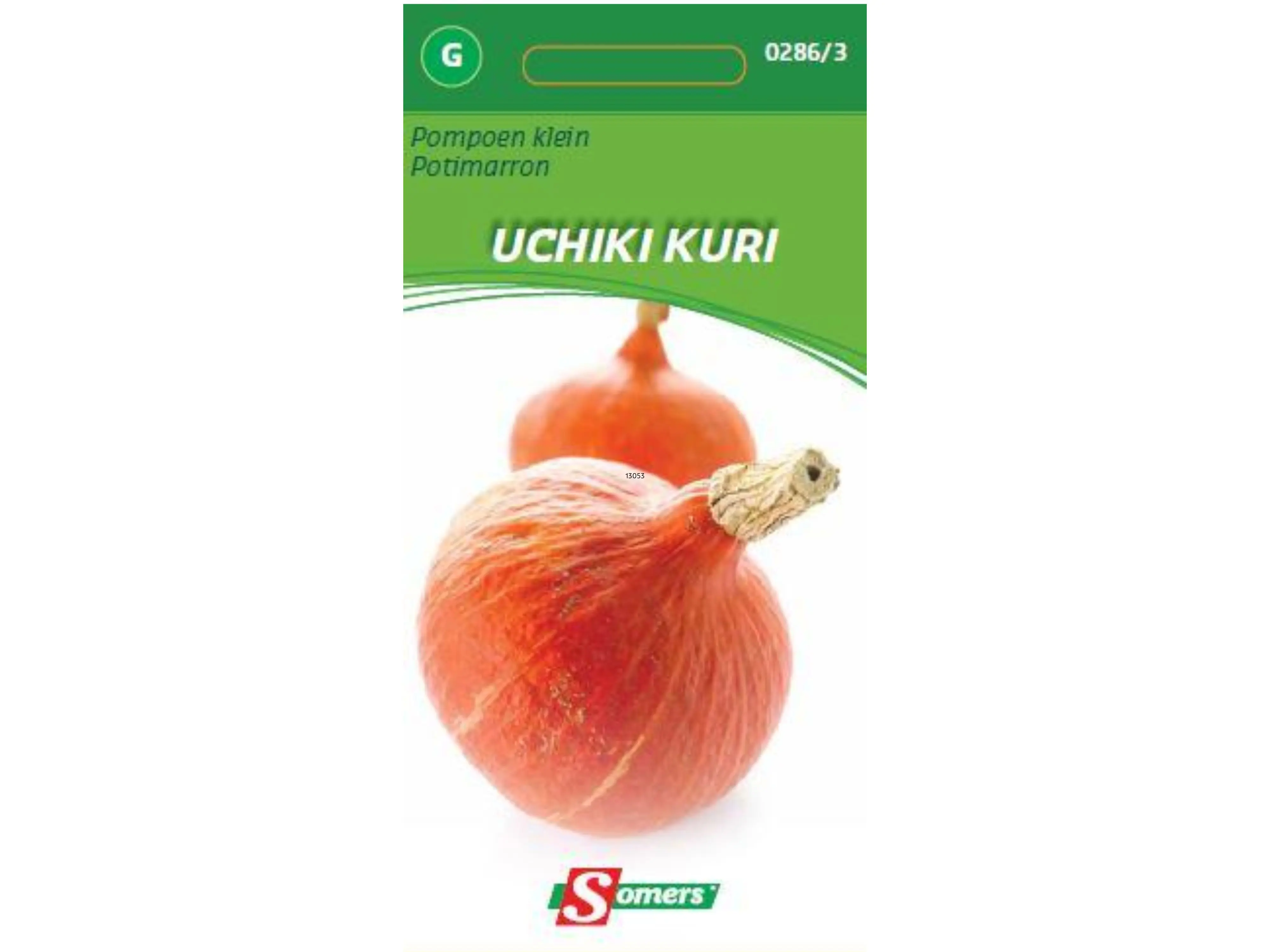 Pompoen Uchiki Kuri is een Japans pompoentje, heerlijk in soepen. Gladde schil die makkelijk te schillen is en geel vruchtvlees met een uitgesproken kastanjesmaak.