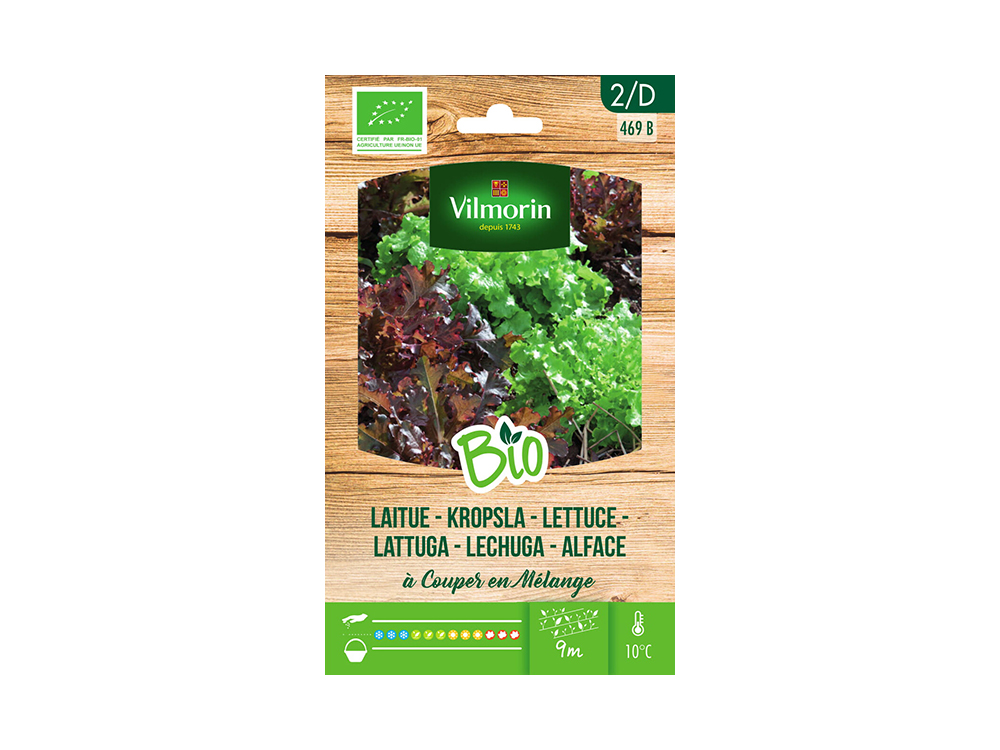 Met de sla zaden van Vilmorin kan je zelf biologische snijsla kweken. Kropsla à Couper en Mélange BIO is een mix van snijsla dat gebruikt wordt voor de bereiding van gemengde salades: 25% Kropsla Meikoningin, 25% Rode Eikenbladsla, 25% Groene Eikenbladsla en 25% Lollo Rosso.