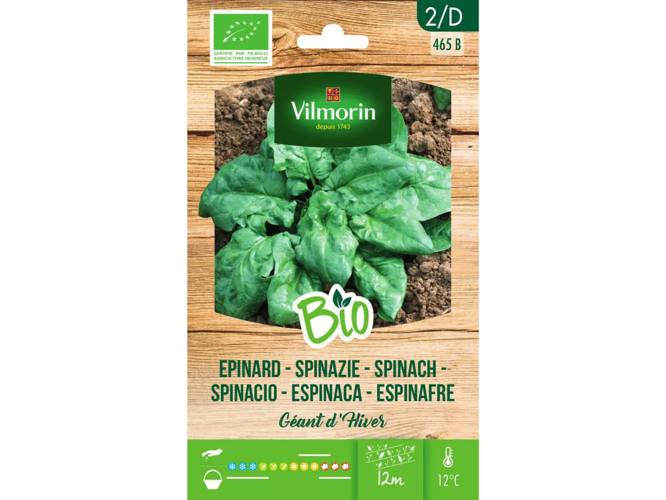 Kweek je eigen gezonde spinazie, volledig biologisch met de kwalitatieve zaden van Vilmorin. Spinazie Winterreuzen is zeer bestand tegen vorst en heeft glanzende, donkergroene bladeren.