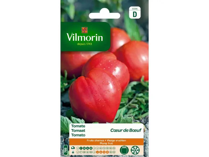 De Coeur de Boeuf is een klassieke Franse vleestomaat met grote, hartvormige vruchten. De tomaten zijn sappig, vlezig en intens van smaak, ideaal voor salades, sauzen of om vers te eten. De plant groeit krachtig en levert een betrouwbare oogst van grote vruchten. Dankzij de karakteristieke vorm en uitstekende smaak is de Coeur de Boeuf een favoriet voor tuinders die houden van traditionele, smaakvolle vleestomaten met een indrukwekkende presentatie.