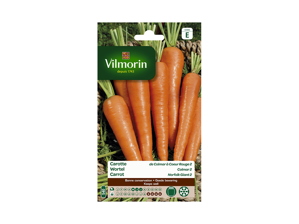 Deze sterke variëteit Wortel Colmar stelt weinig eisen aan de bodem en is zeer geschikt voor herfstoogst. Zeer productief met lange, dikke wortelen met een rode kleur.