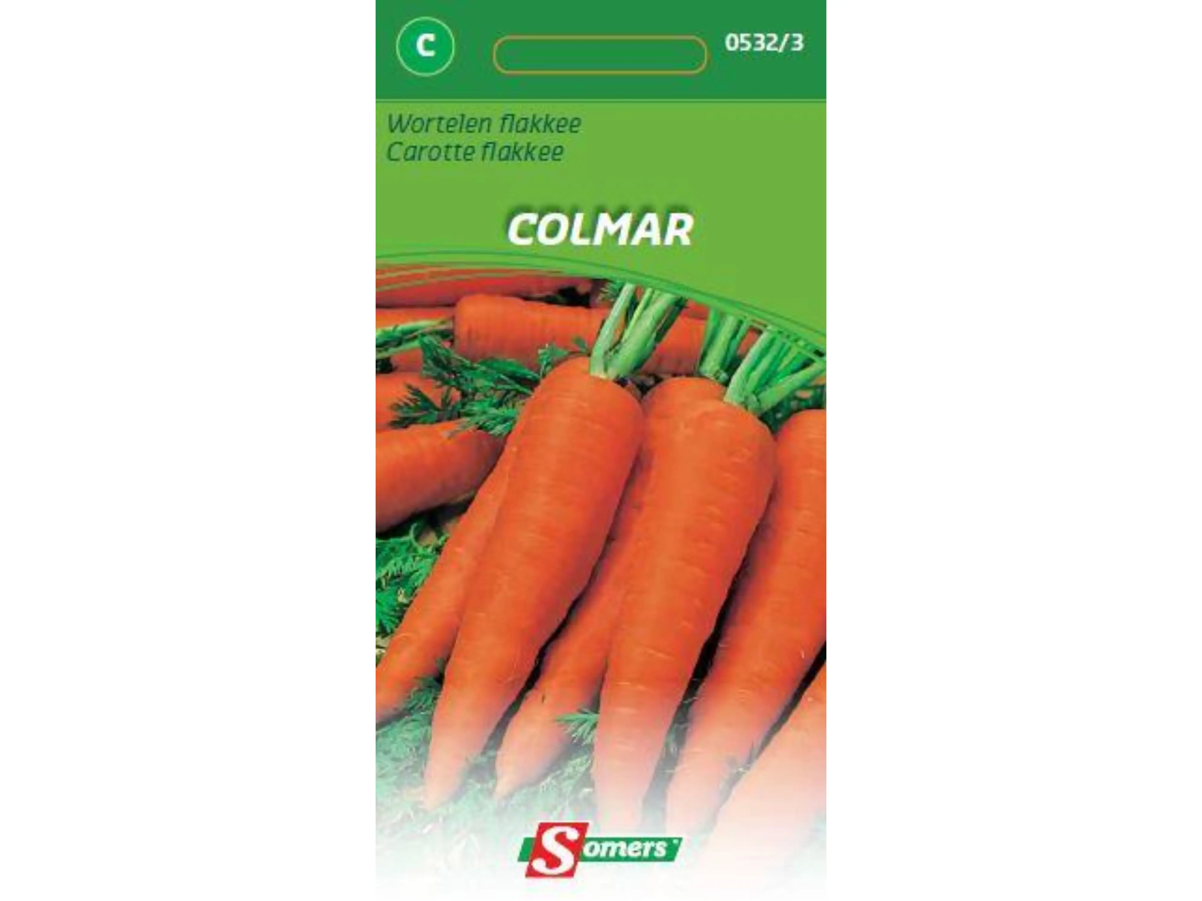 Wortelen flakkee Colmar is een lange, mooi gekleurde wortel met rijk loof. Deze Flakkese type is een van de zwaarste rode tuinwortelen en heeft een mooie, cilindrische vorm.