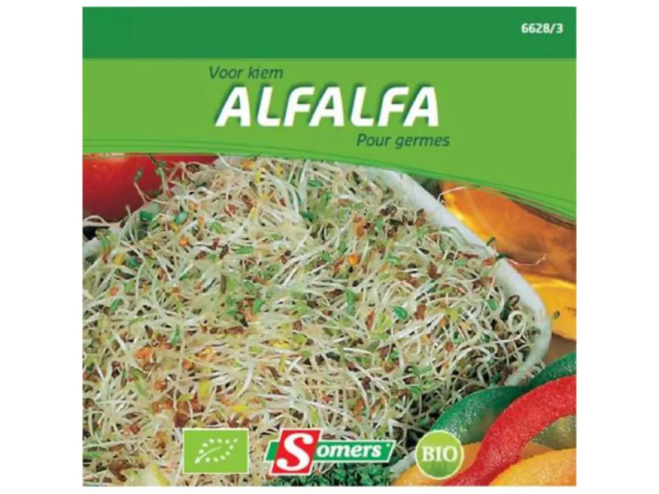 Alfalfa is een gezonde kiem zeer rijk aan vitamines, mineralen en enzymen. Strooi gelijkmatig in een kiembakje. Geef water zonder dat de kiemen drijven, ververs het water dagelijks en zorg voor voldoende verluchting. Om goede en lange kiemen te kweken niet in het zonlicht zetten. Voor gebruik enkele malen spoelen. Klaar in 5 dagen.