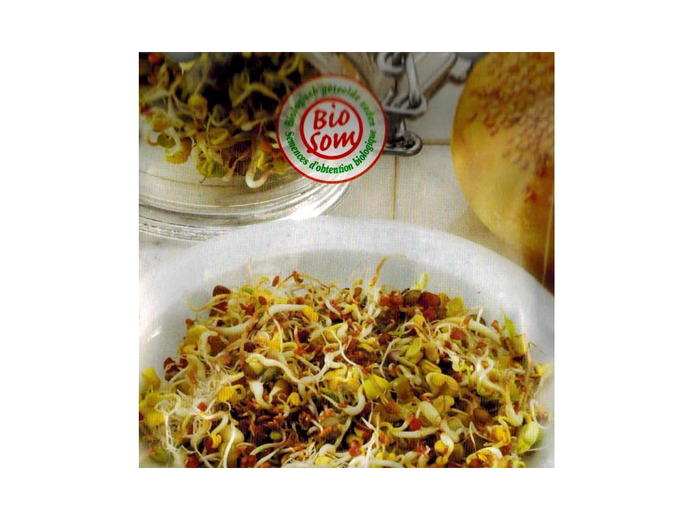 Gezonde kiem zeer rijk aan vitamines, mineralen en enzymen. Deze lentemix bestaat uit een zadenmengeling van alfalfa (taugé), tuinkers en linzen. Strooi gelijkmatig in een kiembakje. Geef water zonder dat de kiemen drijven, ververs het water dagelijks en zorg voor voldoende verluchting. Om goede en lange kiemen te kweken niet in het zonlicht zetten. Voor gebruik enkele malen spoelen. Klaar in 5 dagen.