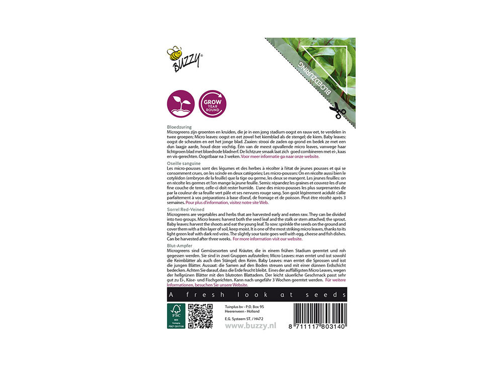 Een van de meest opvallende microgreens is deze met lichtgroen blad en opvallende bloedrode nerven. De frisse, lichtzure smaak past perfect bij gerechten met ei, kaas en vis.
