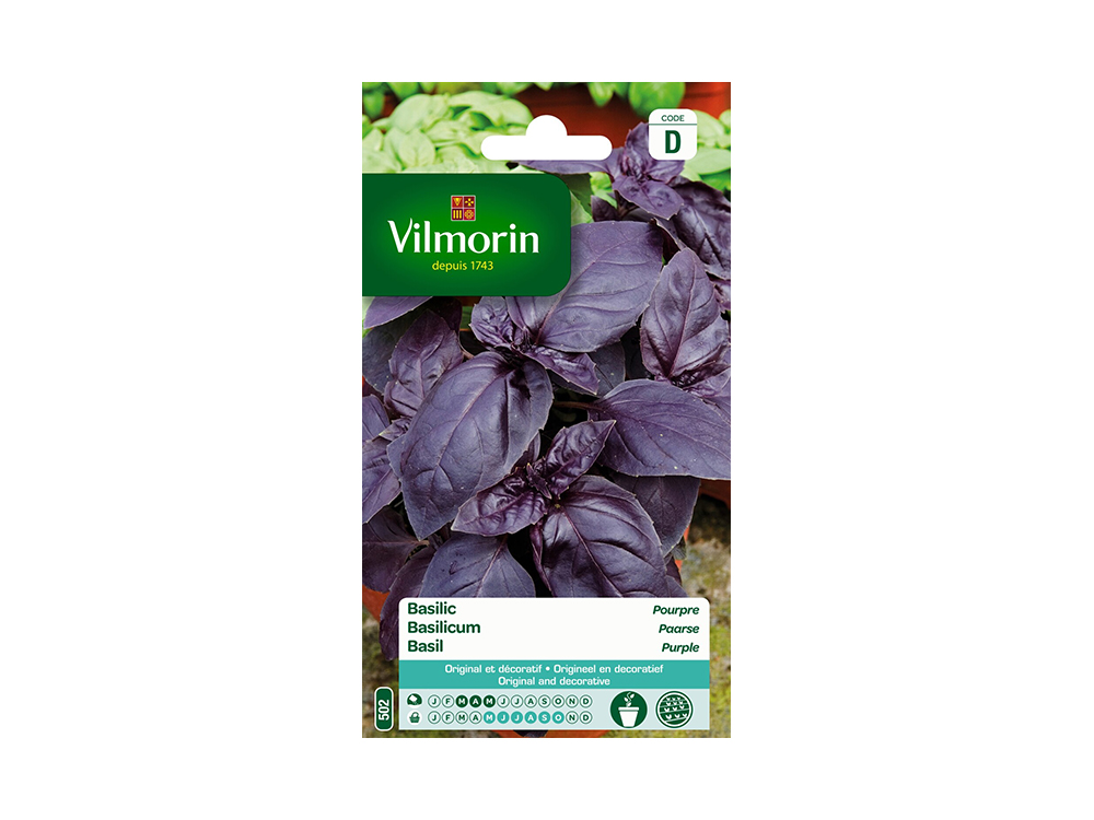 Zeer decoratieve basilicum met opvallende paarse bladeren. De plant heeft een frisse citroensmaak en wordt vaak gebruikt in Zuiderse gerechten. Een keukenkruid met de allures van een sierplant. Kan zowel in volle grond als in bakken op een terras geteeld worden.